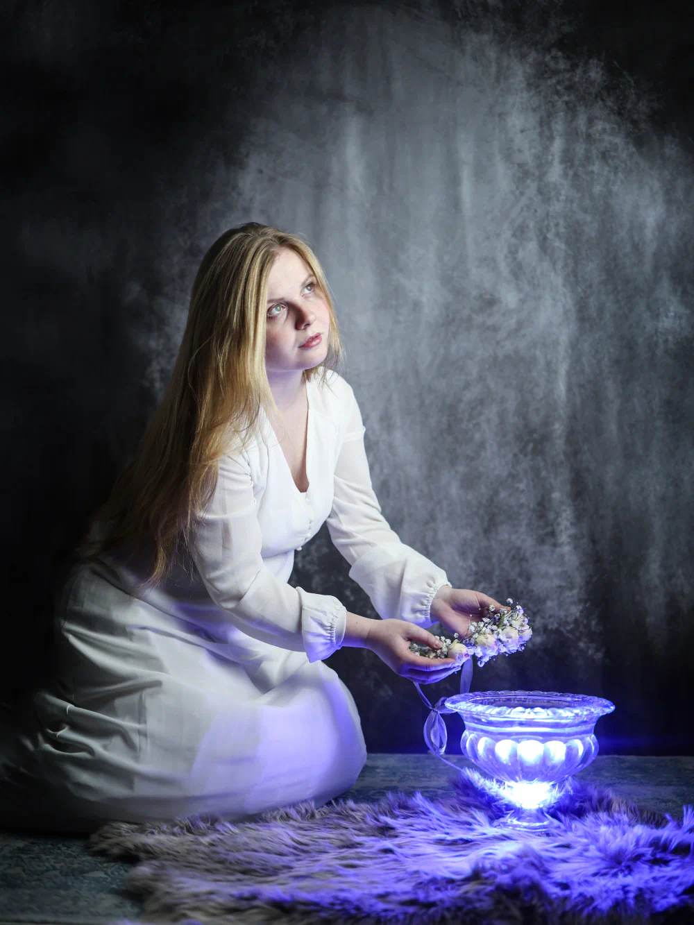 Visually, the project blends cinematic composition with fine art portraiture. Careful attention is given to color palettes, textures, and symbolic details, creating an immersive atmosphere that feels both timeless and otherworldly. Each frame is constructed to stand alone as an image while also contributing to the continuity of the overall narrative.