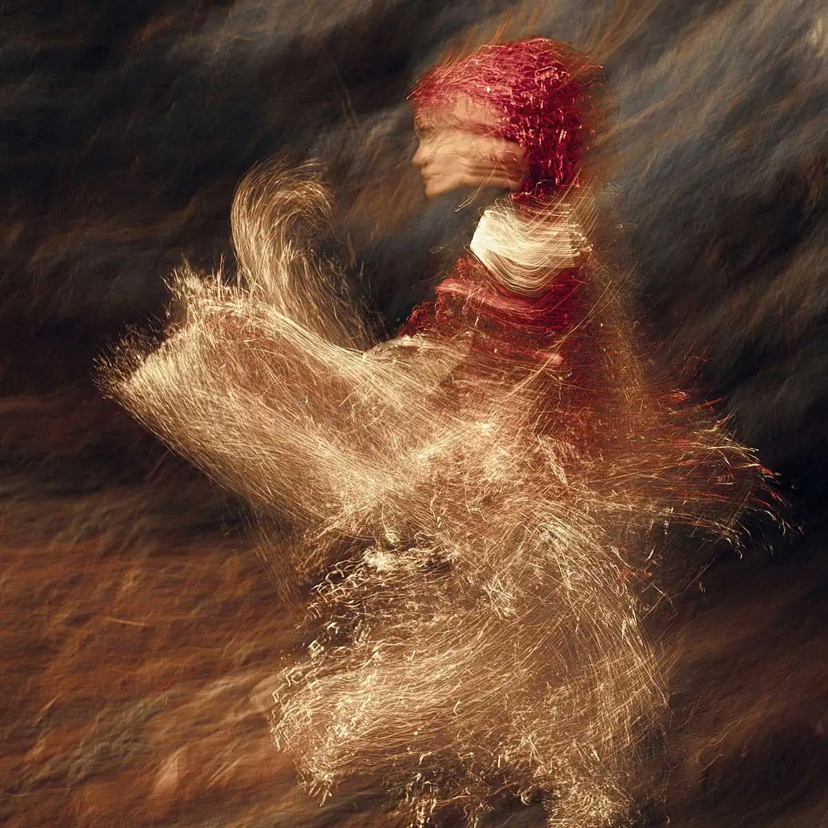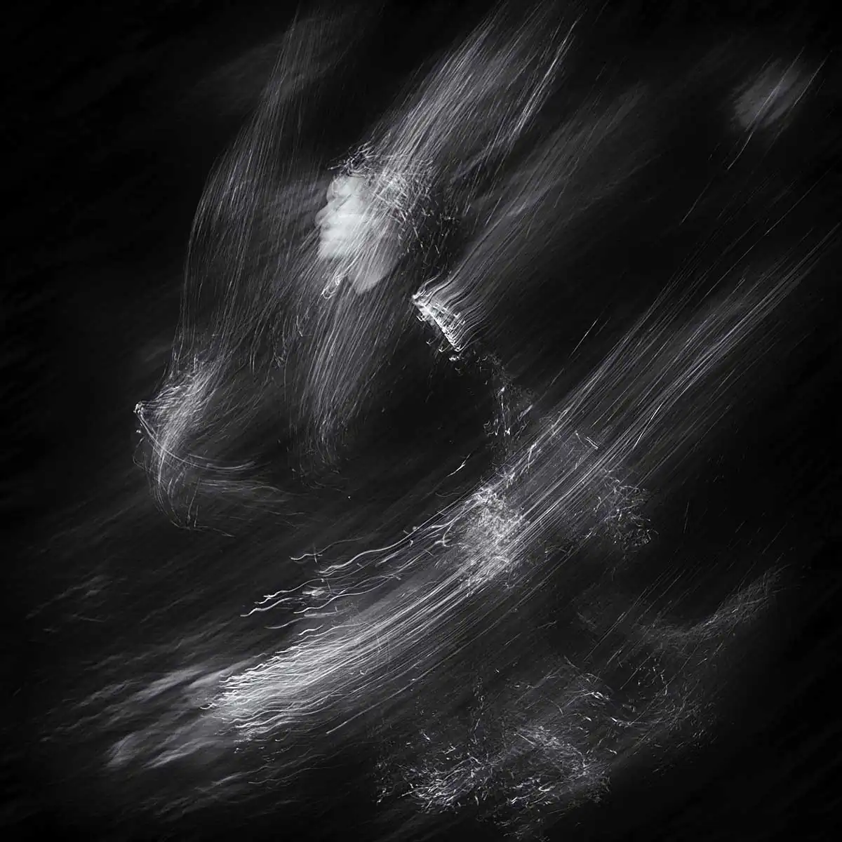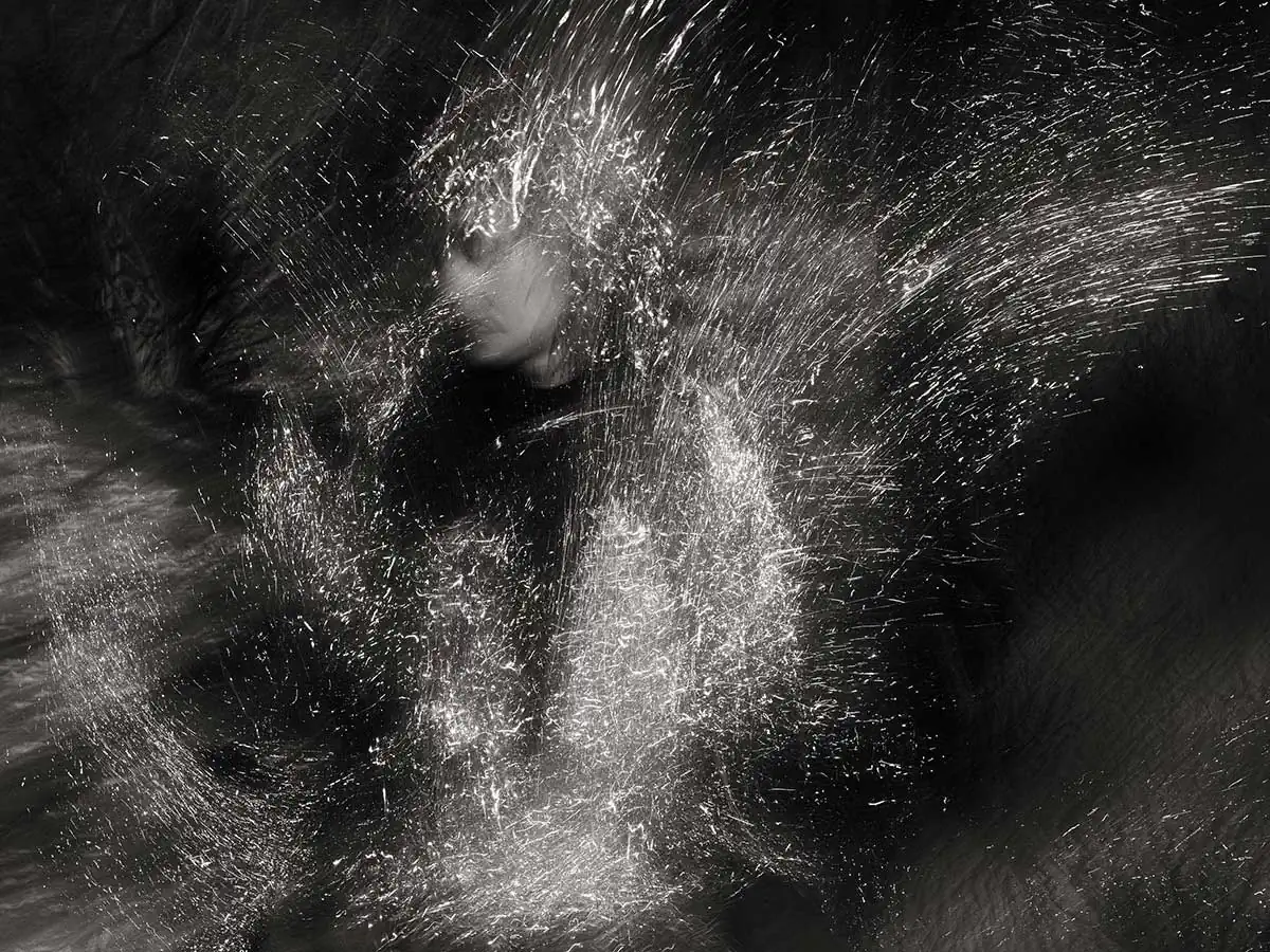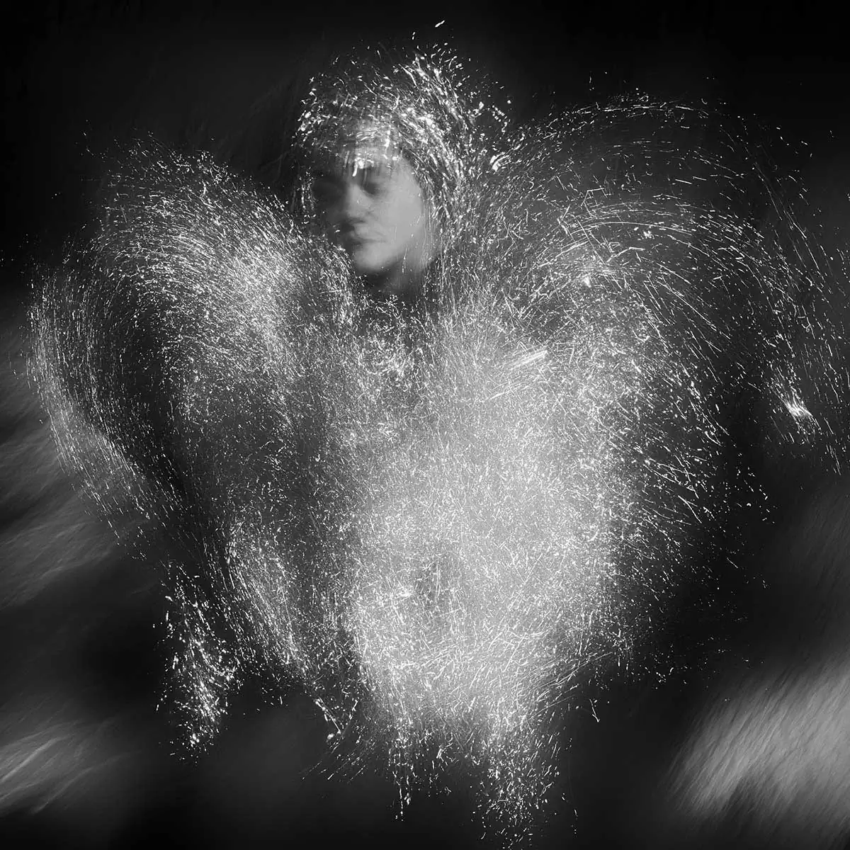 I found a way to catch light on a chosen special material in such a way that it resembles light particles in motion. Thus, I combined two motions at the same time, the motion of the photo camera and that of a moving character.The results range from very abstract to a kind of light sculptures, from which sometimes a face can be seen peering through the streaks of light. By using different motions and poses, I tried to give a dynamic feel to the images as well as freeze the movement in time. The results seem to depict spirits made of light, as if transported to this plane of existence from another world, a world with less gravity and near to no solidity.