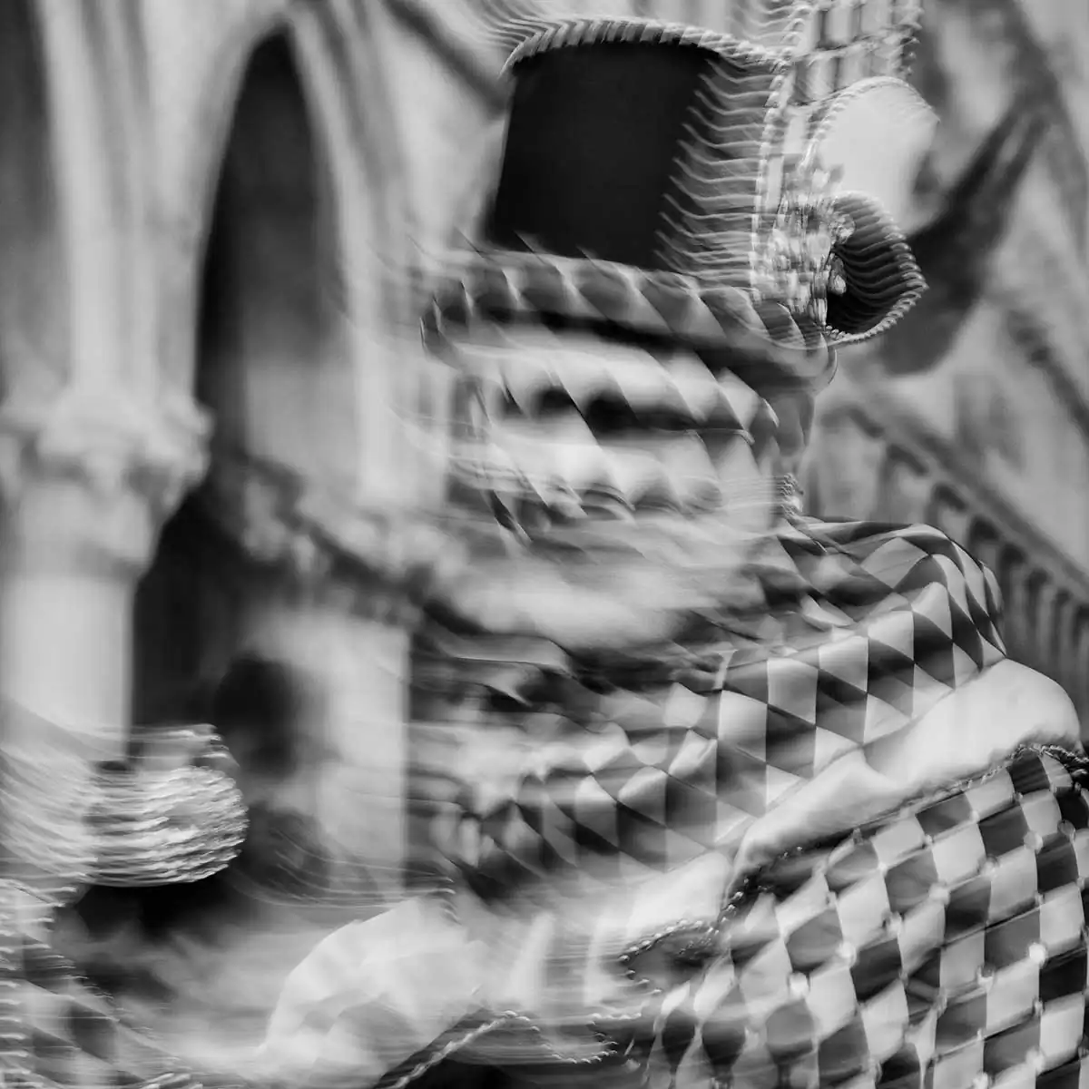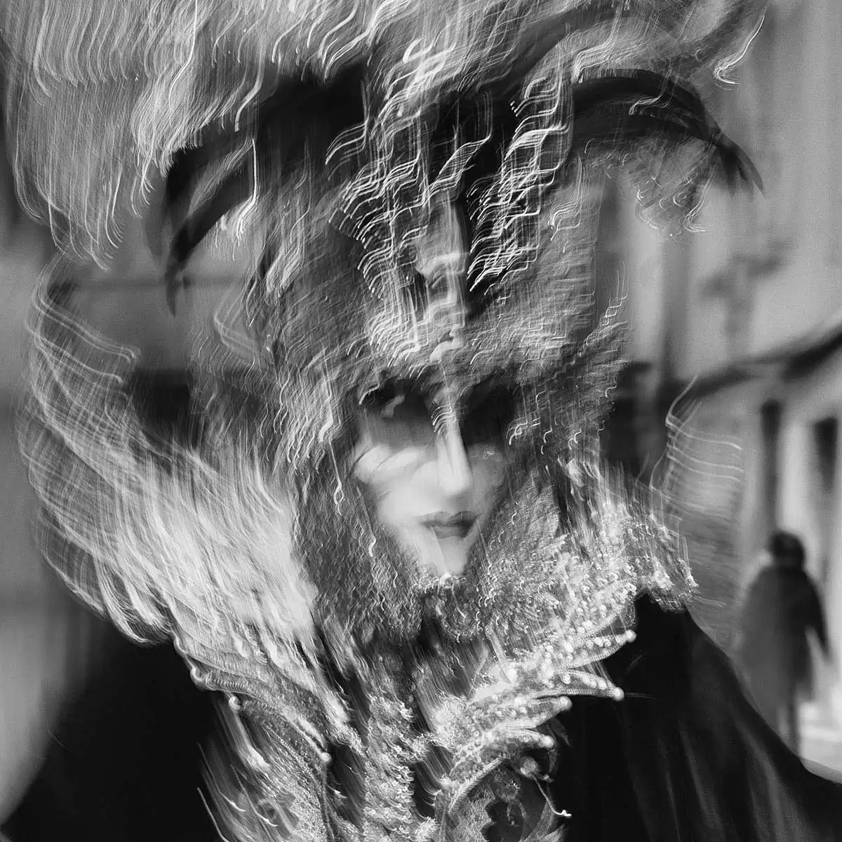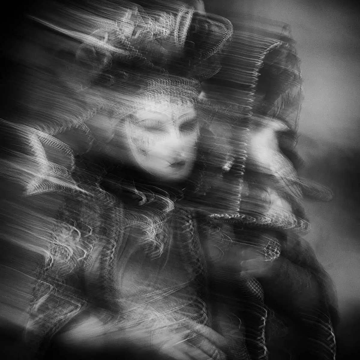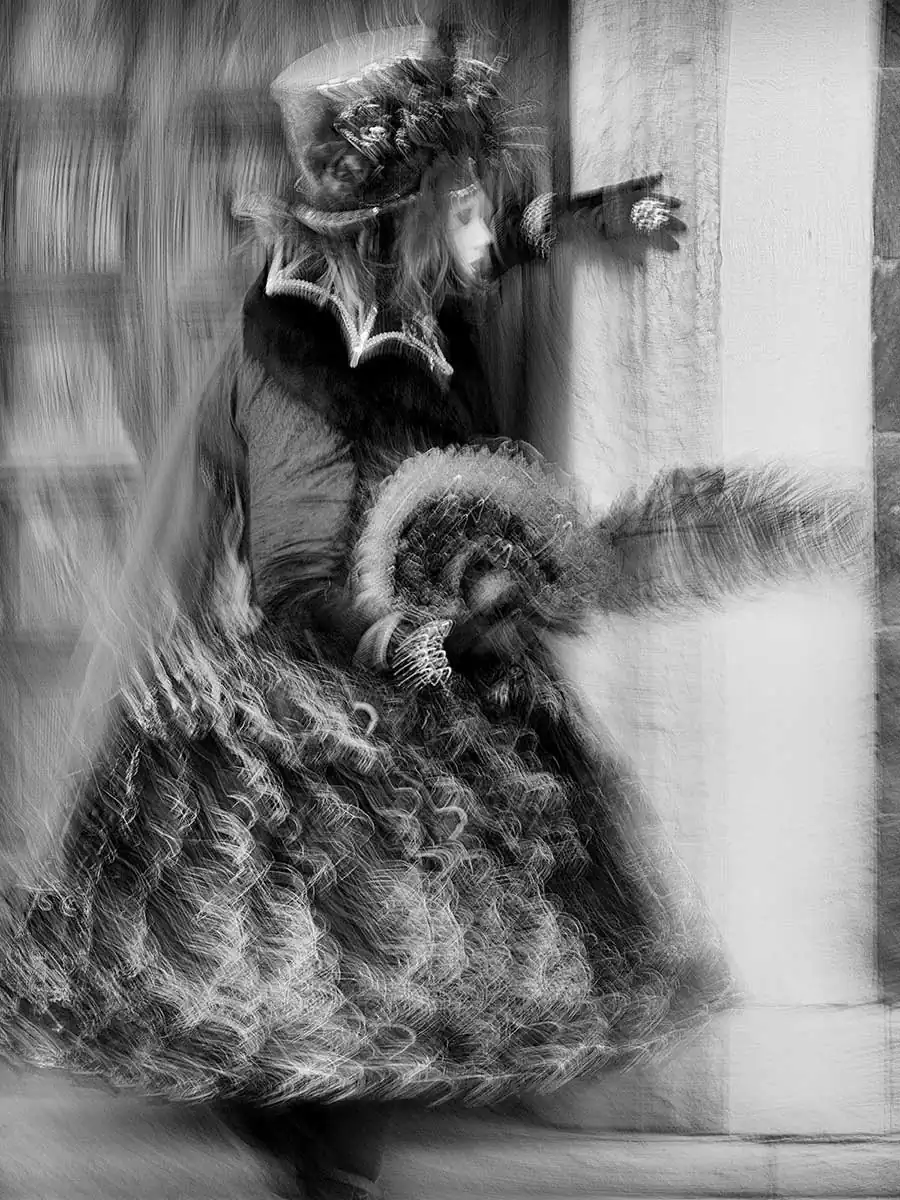 I arrived at the Venice Carnival, fully aware of the difficult possibilities ahead. I tried to bring some of the old carnival magic back, by making photos look like impressionist scenes from a dream. In that way, you can’t see the flashy or sometimes cheap adornments on some of the costumes, and light glitters make light trails.The Venice carnival of old was probably a more mysterious event, with masks and costumes sometimes lost in streets all over the city – now it has lost some of that mood, because of tourism and everyone taking photos of all the costumes. Most masks you can meet only in the very center or at specific spots. Photographing with ICM has changed that and created a world more beautiful than in reality, which in a way, was my goal.