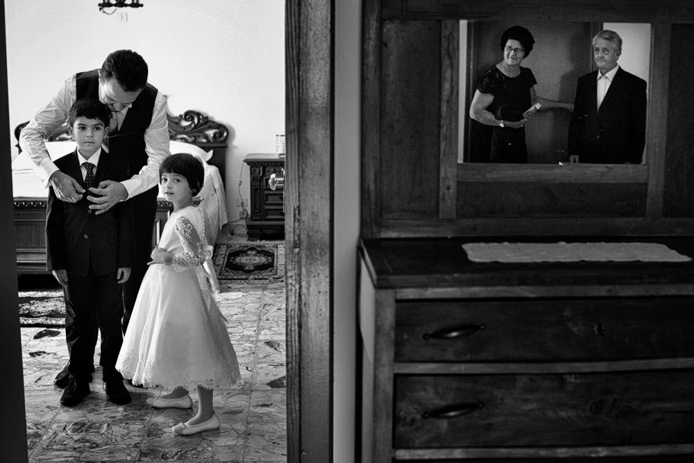 Over time this path has been reinforced through engagement with the international community of the Wedding Photojournalist Association, whose emphasis on authenticity and observational rigor encouraged him to refine a language grounded in the truth of the moment. Rather than adhering to formulas or trends shaped by social media, he approaches each event as an unrepeatable story. His aim is to follow the emotional thread as it unfolds, understanding the couple and their environment deeply enough to translate their presence into images that retain both naturalness and compositional harmony.