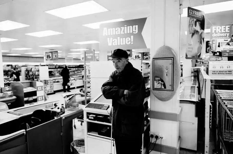 “One thing, that’s been very good, is the way they look after me in Iceland (Supermarket). I’d be in a terrible muddle without their help as I’d never be able to find the things I needed on their shelves. I walk from home, into town, and to Iceland and I go up to where the tills are and I’ll stand there and wait until they spot me.”
