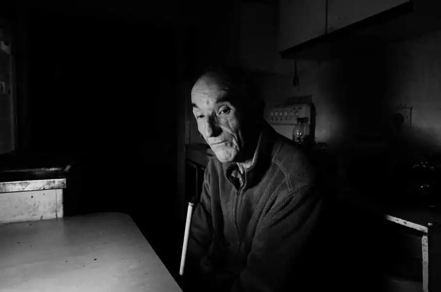 “I’m holed up here, like an outlaw, if I venture out, I have unseen enemies after me, the weather can be an enemy too. I’m outside of everything, because I’m blind, I can’t be a part of things, so I’m apart from them, I can’t go in anywhere and have a look, I can’t really mix with other blind people, as they may have gone blind in another ways to me, so, I’m outside every group, an outlaw.”
