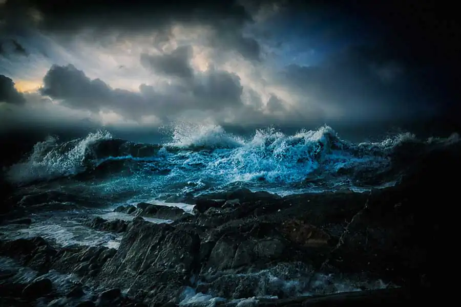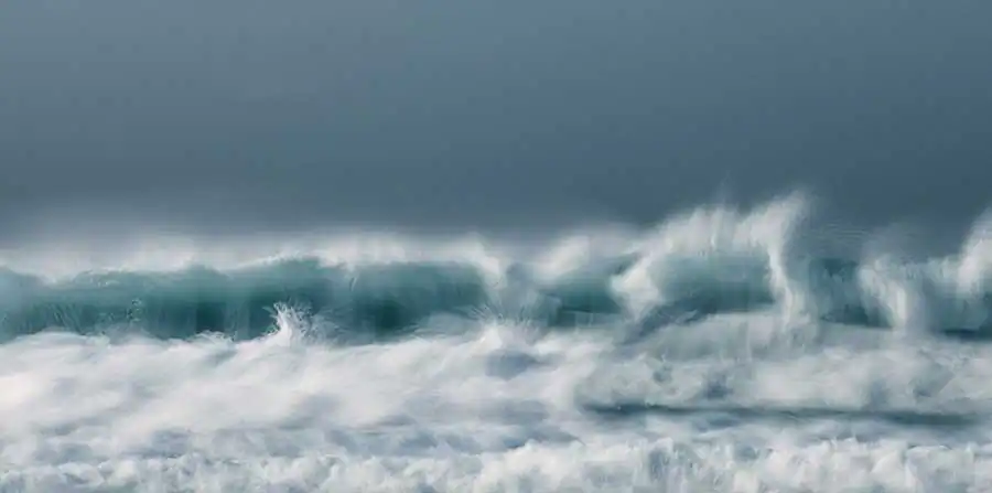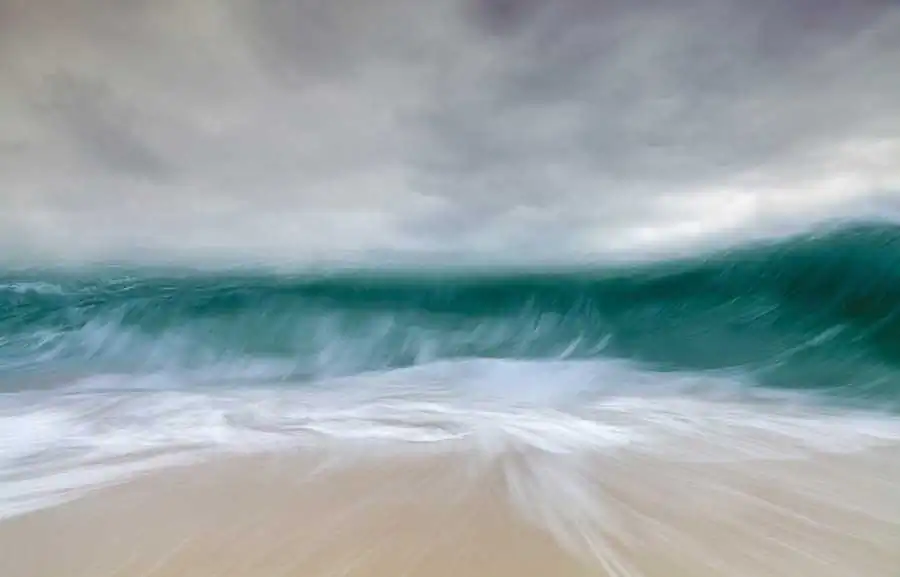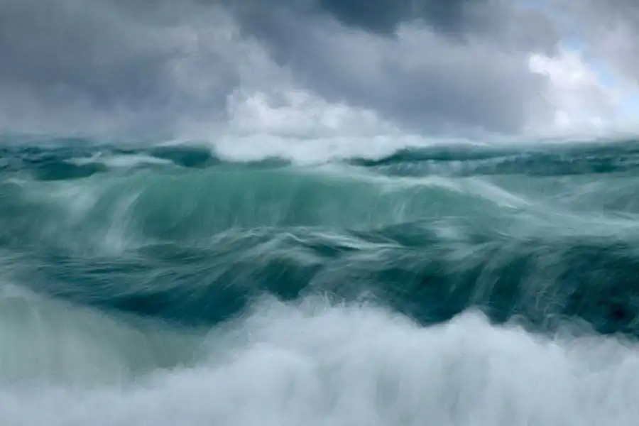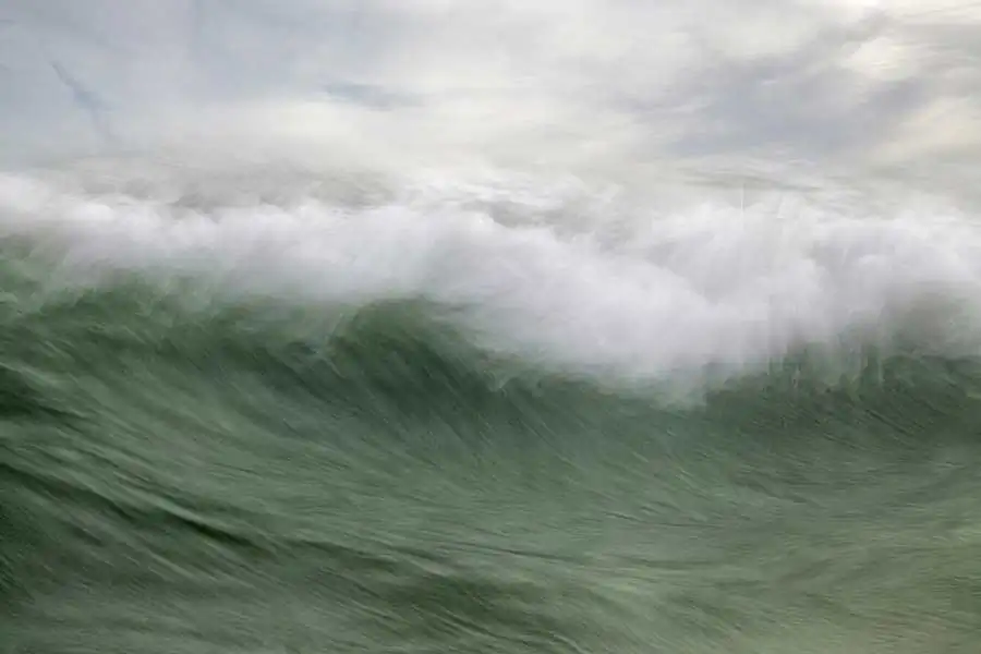 On location, I experiment with a variety of shutter speeds and focal lengths using filters whilst trying to look for relationships between the waves and ideally clouds. I aim to have at least a line of foreground or central wave across the frame. I try to take a painterly approach if that makes sense as I want the images to say this is how it feels to be at the shoreline with the battering wind full of salt, the spray, the thump of the waves, the sense of vulnerability. Most exposures are between 0.3 and 0.6 seconds as longer exposures tend to remove the textures and flow from the sea. I rarely look at the sea in a freeze frame perspective and for this series I wanted to convey the constant energy and flow contained in the sea.
