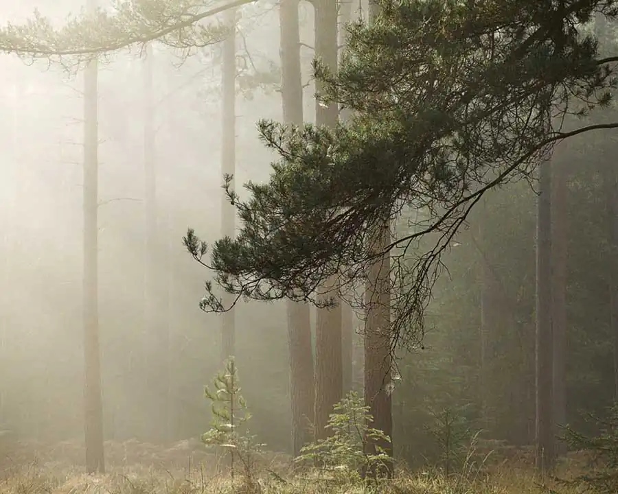 Ridge Trees concentrates on the New Forest, Hampshire, UK and is defined by three attributes – dawn, mist and location.