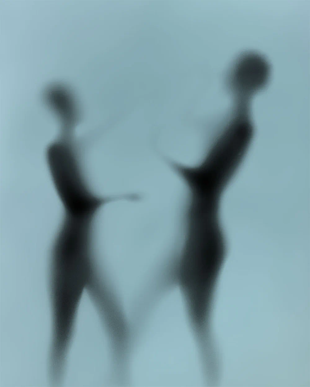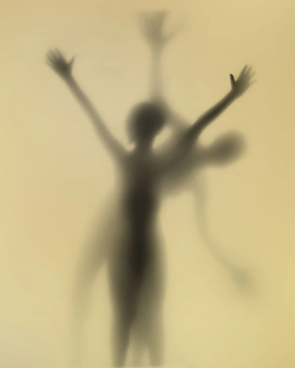 The photographs in the Forms series were shot over the course of a year, mostly in my studio at ARTFUL in Cleveland Heights, and in a rental studio in Austin, Texas. Models were photographed against a brightly lit white backdrop. A translucent screen, approximately eight feet from the backdrop, separated the models from the camera. Models appear darker as they get closer to the screen — from black when touching it to pearly white at a distance of as little as two or three feet.