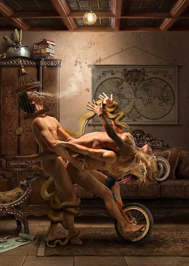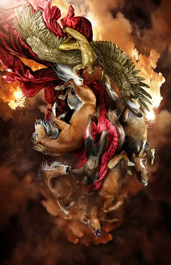Within the context historiography of art, the use of photography, and more specifically, touching up photographs, is nothing new. We do however aim to innovate somewhat, in terms of the themes on which our work is based. Regardless of the fact that our main source of inspiration is mythology, up-to-date themes or others that are the simple fruit of our creativity, still remain full of details, of symbols, of images, an attempt to captivate, but mainly, as an attempt to stimulate critical thought in viewers.