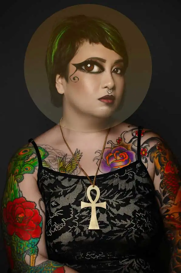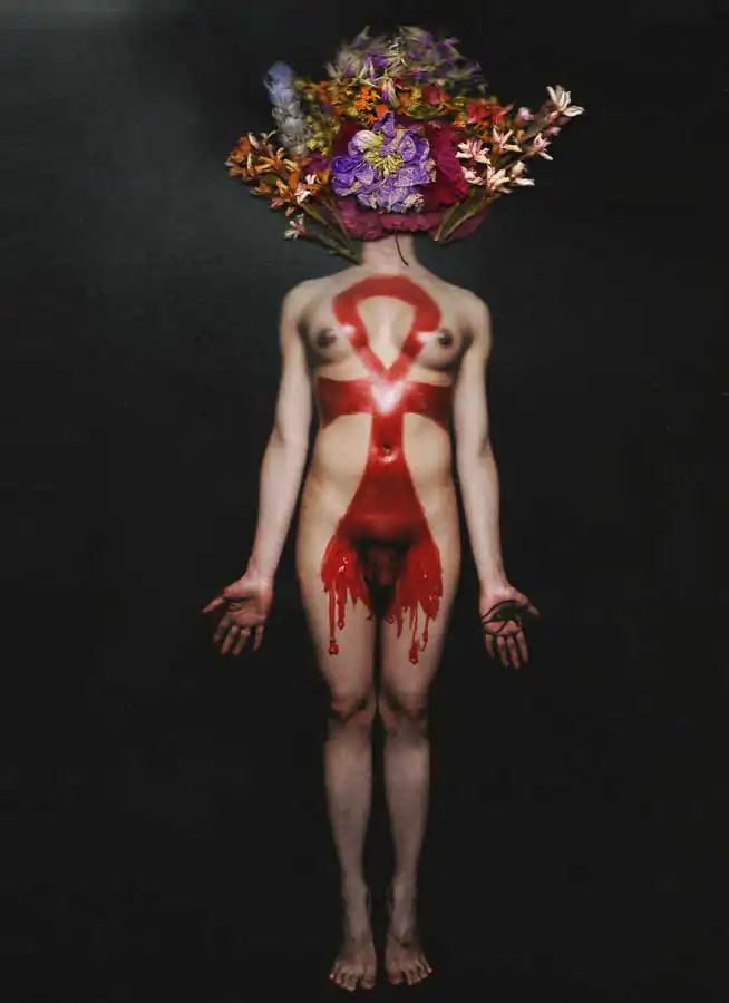 I want this series to start a discussion (i.e. the transitioning person with the ankh painted on her body where you can see her boobs and her penis). I want this series to transcend layers of meanings more like death itself- it creates life. [Official Website]