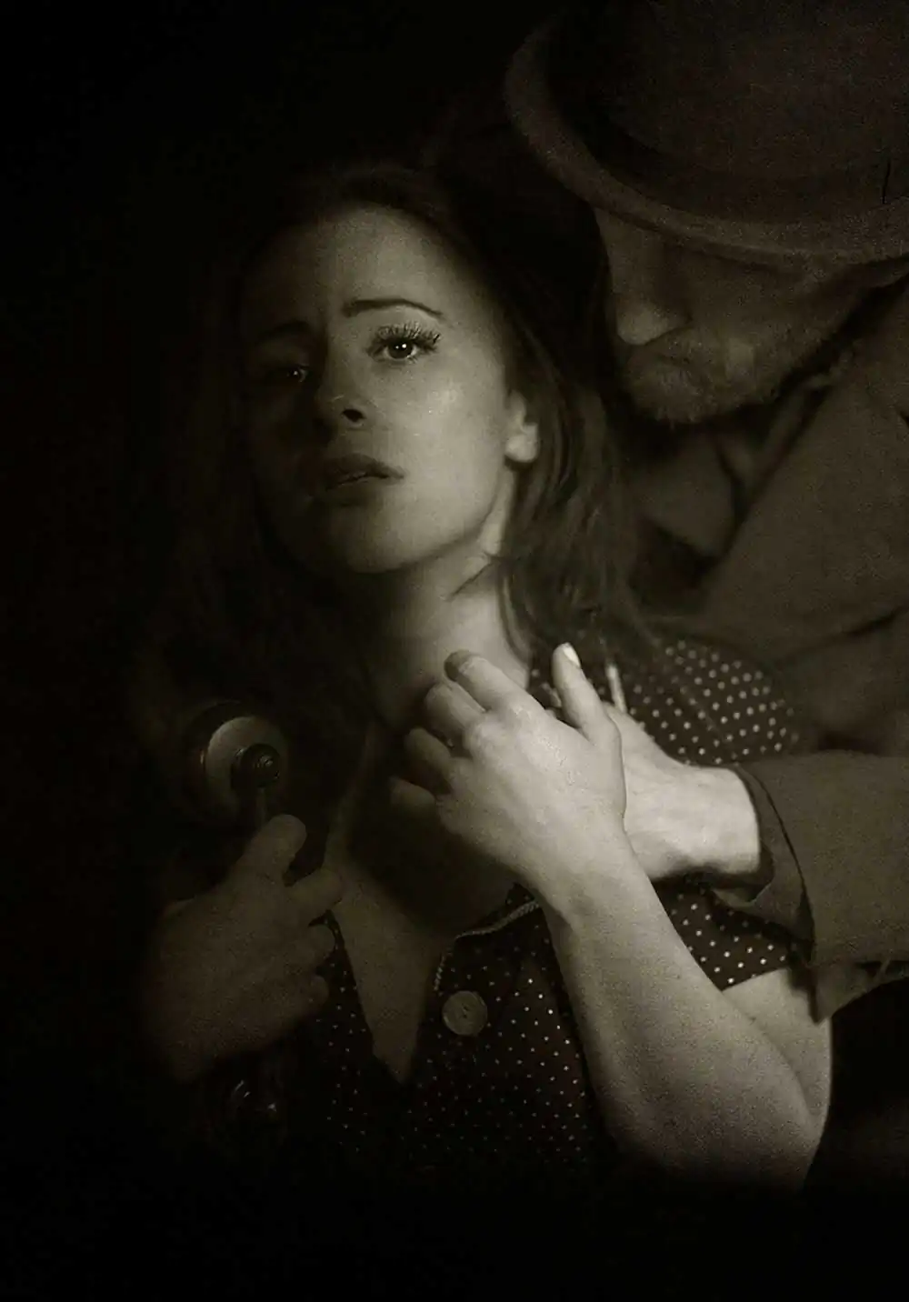 Studio lighting and visual models within Savage’s images appear mysterious, dark, and seductive. The noir series is inspired by the narrative cinematic legacy of Alfred Hitchcock, and every reference has a connection to film and our recent cinematic past. Just like its title “Definitive Ambiguities”, the photo-images are meticulously constructed with a keen sense of ironic & iconic visual impact.