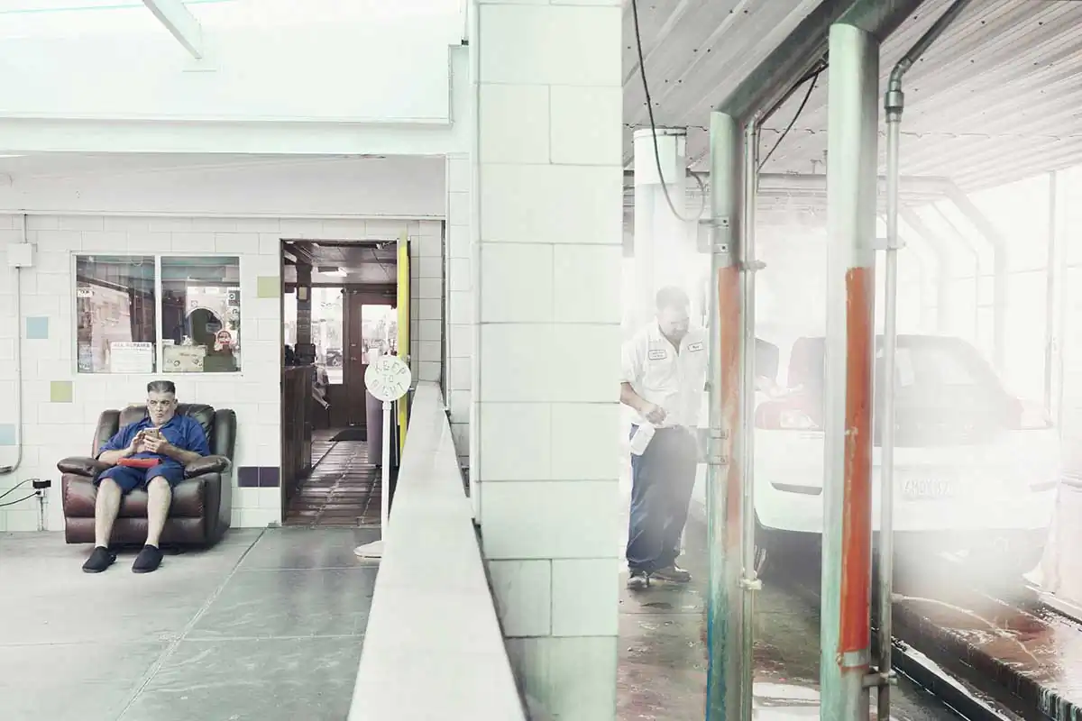 It was established in 1947 by Barbara McKinney at 645 South Palm Canyon Drive. Barbara was the first non Native American girl born in Palm Springs. The same year that the car wash opened Frank Sinatra visited the town and changed it forever. While I was shooting I could imagine Frank rolling through with his Rat Pack buddies getting one of his American classics cleaned. Maybe he left a memorable tip, since he only carried hundred dollar bills in his wallet, I’ve heard. Fulgenicio, Miguel, Jimmy, Landon and Keith are among some of the dedicated staff portrayed in the shots keeping Palm Springs’ cars clean with just soap water and buckets, just as was done back in the 40’s.