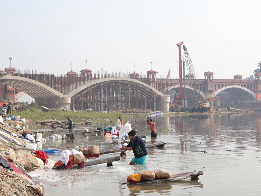 Lucknow’s Dhobi Ghat stretches along the Gomti River in the Kandra area, where the charm of its heritage resides, with landmarks such as Bada Imambara, Rumi Darwaza, and the Husainabad Clock Tower. Since 1914, the Hardinge Bridge, also known as Pucca Pul, has been used to cross the Gomti. In 2024, more than a century later, engineers declared it unfit for heavy traffic, and the bridge was restricted to lighter vehicles only.