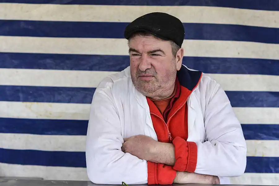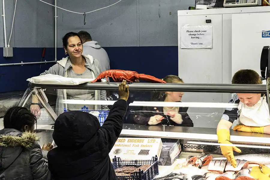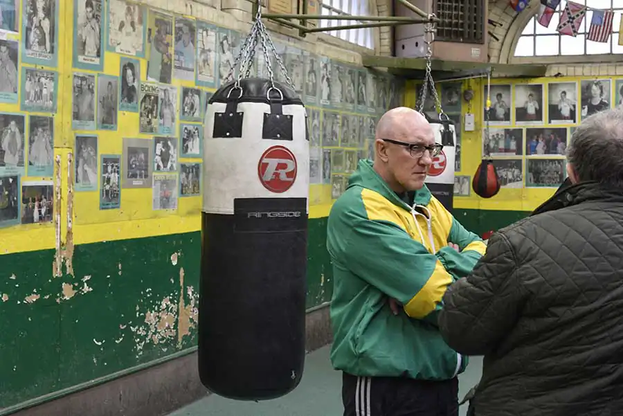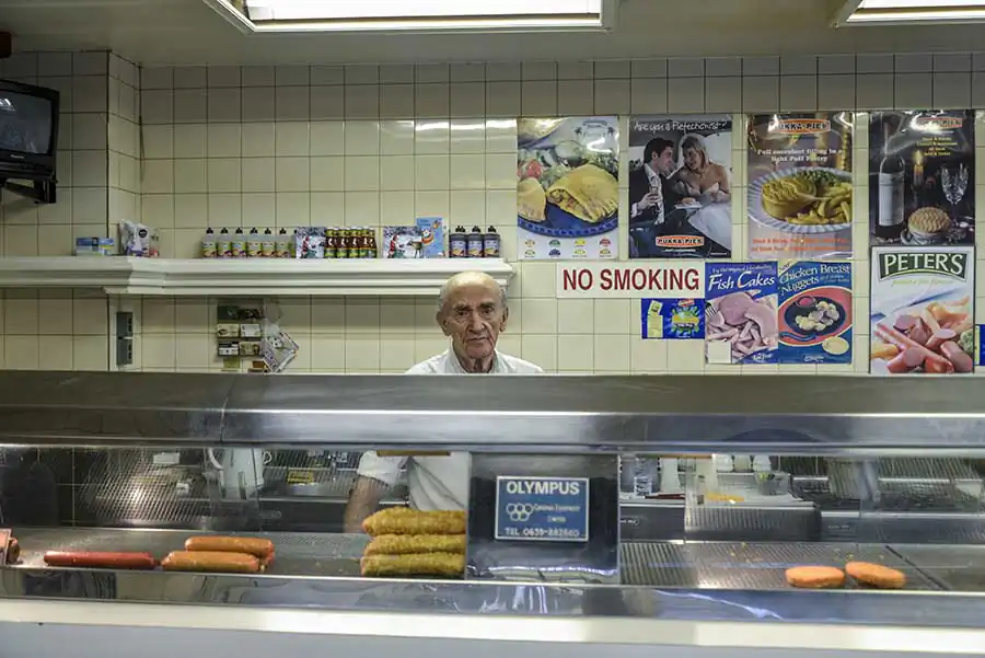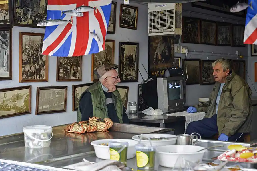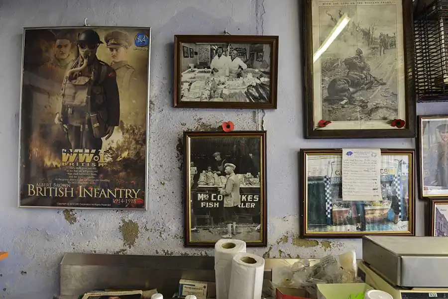 Amateur boxing bouts at the East Ham Working Mens Club on the 10th April 2015, London.West Ham United fans support their team outside the stadium during a football match the 27th December 2014, London, Upton Park, Boylen ground.Paul Gerome performs at the East Ham Working Mens Club on the 6th December 2014, London.Men enjoy a sunny day at midday outside of a local pub in Bethnal Green on the 24th April 2015, London. The unemlpoyment rate of the East End is the highest of London.Nino, owner of the Nino’s Capri Fish for 42 years, poses for a photograph inside his shop on the 28th December 2014, London.Portraits of former boxers hung on the wall of the Repton Boxing Club, in Bethnal Green on the 19th March 2015, London.Gary Cooke (left) talks to the gym head coach Tony Burns at the Repton Boxing Club in Bethnal Green on the 19th March 2015, London.Two men drink beer prior to the start of an amateur boxing bout at the East Ham Working Mens Club on the 10th April 2015, London.Friday night at the East Ham Working Mens Club on the 7th December 2014, London.A few photographs, a film poster and a paint hung on the wall at the George’s Plaice, popular fishmonger in Roman Road, Bow, on the 11th March 2015, London.Mr Downey, fishmonger, at his street stand in Mile End on a trade day on the 8th March 2015, London.An English fishmongers family run business at the East Ham Market Hall, popular market with a mix of traditional East End shops and Asian stalls.A view of the East End, with tall its traditional bricks houses in Bow on 12 February 2015, London.Chris Nathan, 3rd generation business owner of Nathan’s Eel ‘n’ Pie Shop eats a jelly eel, traditional east end meal before her shift on the on the 14th October 2014, London.Mr Broomfield share a joke with his friend Tom at the George’s Plaice, traditional East end fish shop, on 11th March 2015, London.A Union Jack flag painted on the side of a car repair shop in Hackney Wick on the 26th March 2015, London.Shirley (left) and Chris (right, 3rd generation business owner) set up the Nathan’s Eel ‘n’ Pie Shop before opening time on the 14th October 2014, London.Mr Broomfield, fishmonger and former photographer, surrounded by his photographs of the London old Billingsgate Fish Market at the George’s Plaice, Roman Road, Bow on the 11th March 2015, London.