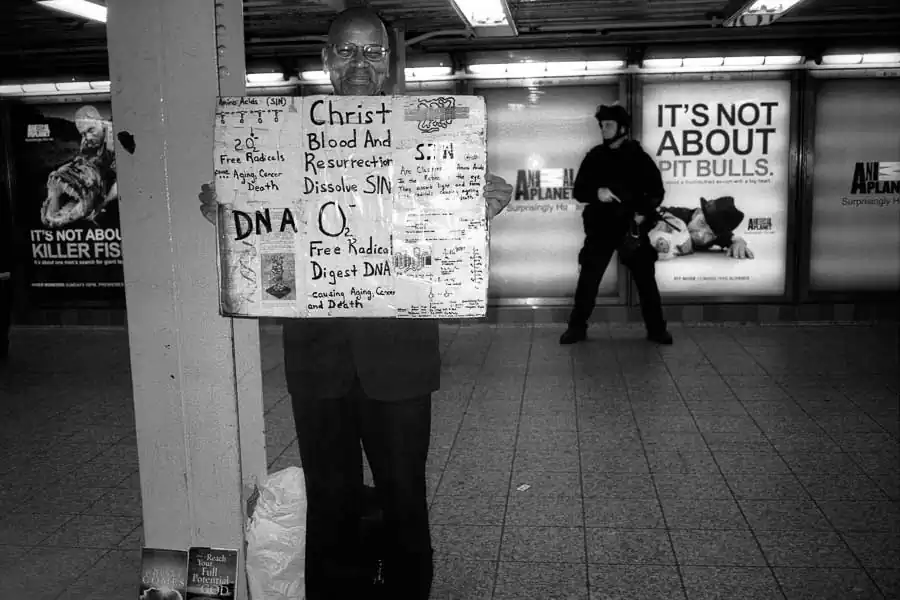 As time went on I started noticing a running theme, the Apocalypse in upon us. The devil is here, chicken little screaming the sky is falling. Everyone must get religion, now !. Open your arms to Jesus, Scientology and other faiths. Then you have one of my personnel favorites the various outlandish or just plain odd denizens of the streets.