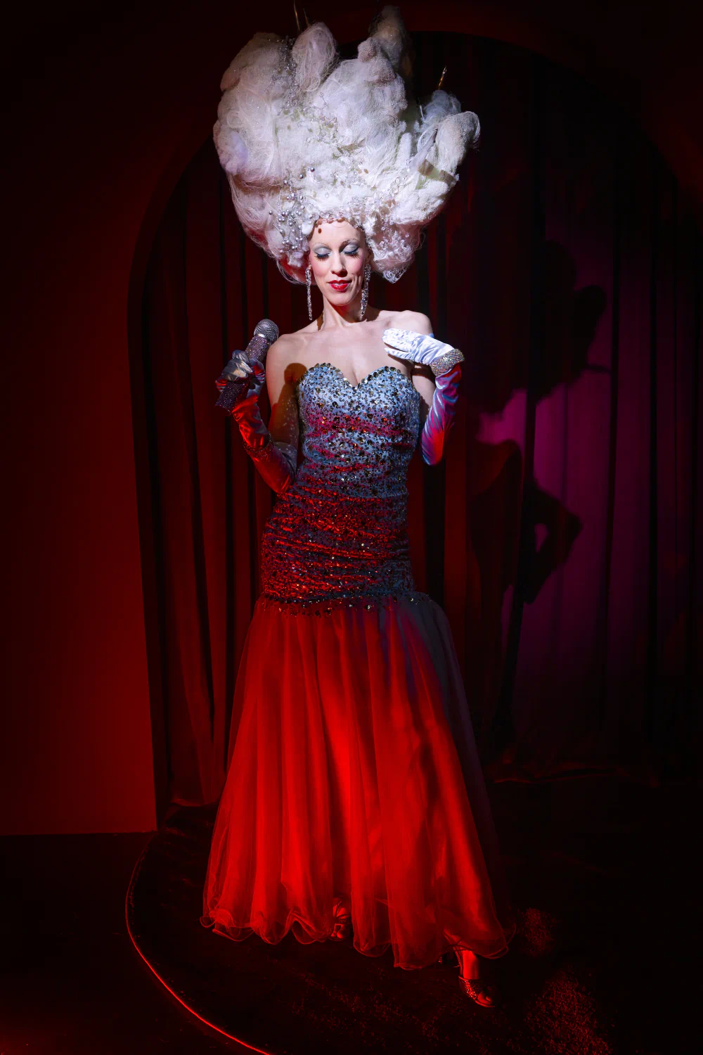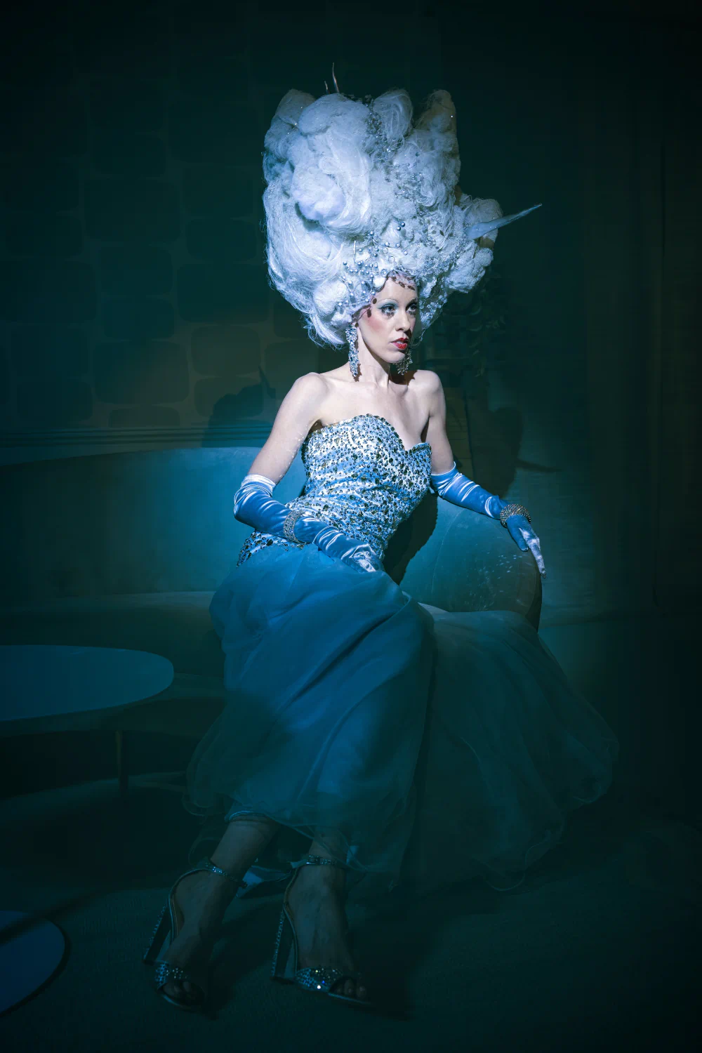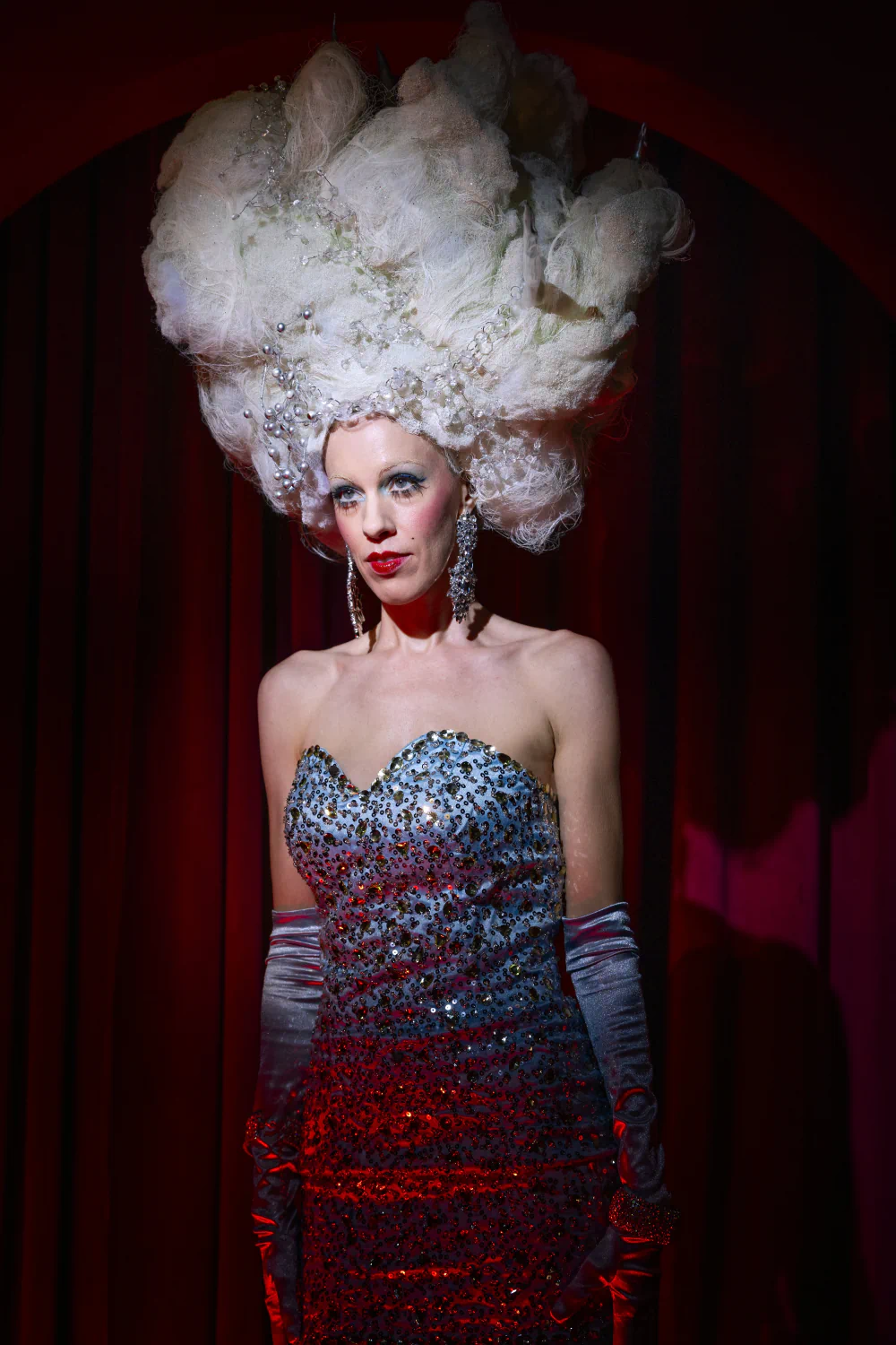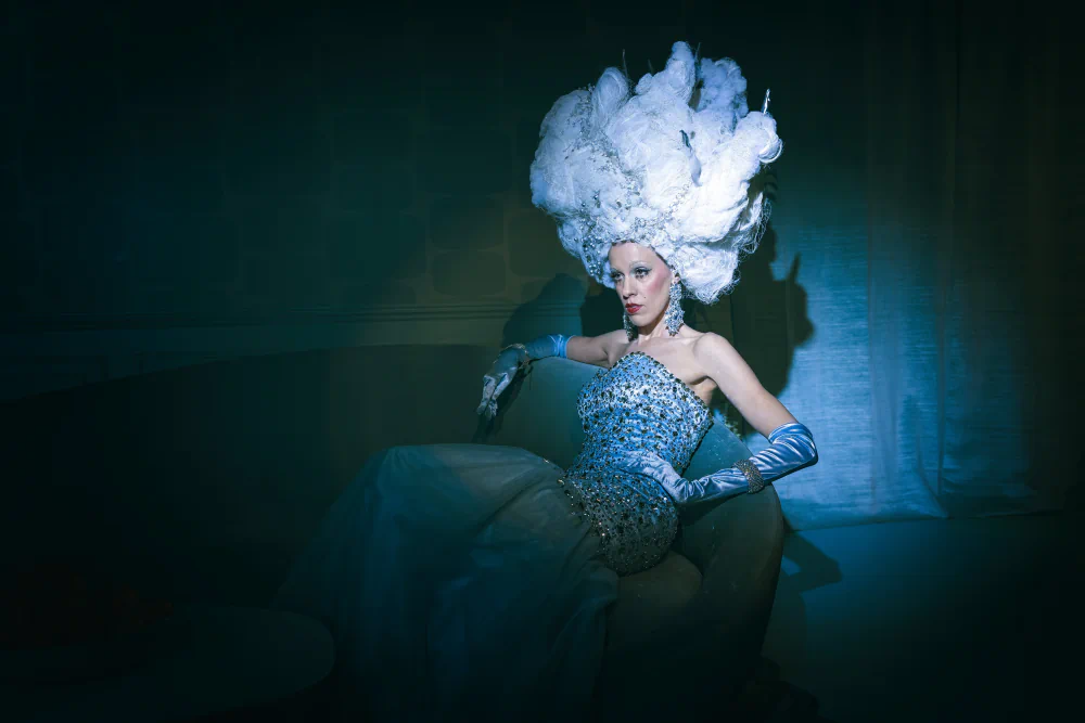 When he saw the giant white wig headpiece, the sequined dress, satin gloves, and jewelry in a quirky costume and vintage shop, a story immediately emerged. He identified with the woman who would wear this. It was a dream, a chance to dare.