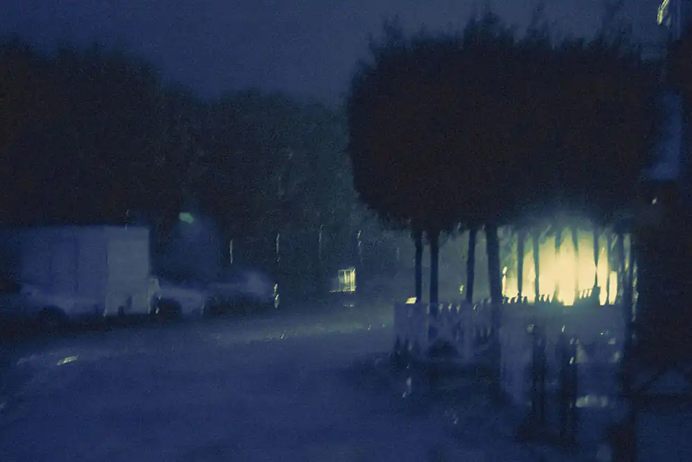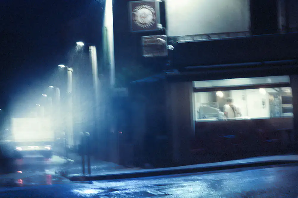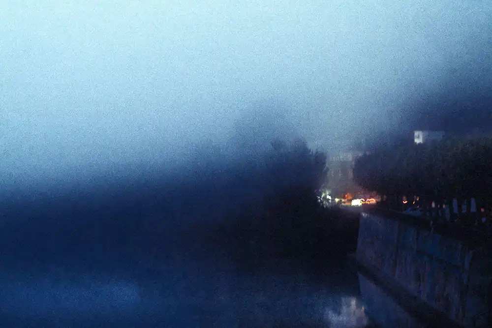 To hold these fleeting atmospheres, I relied on two very different tools. Most of the series was created with a Leica M11, capable of preserving subtle gradations of fog, rain, and sunlight. But when night arrived, I turned to the iPhone. Its limitations gave the images a rougher, grainier texture. Together, these devices spoke in two voices: the delicacy of Leica color and the harshness of the iPhone’s overexposed night lights.