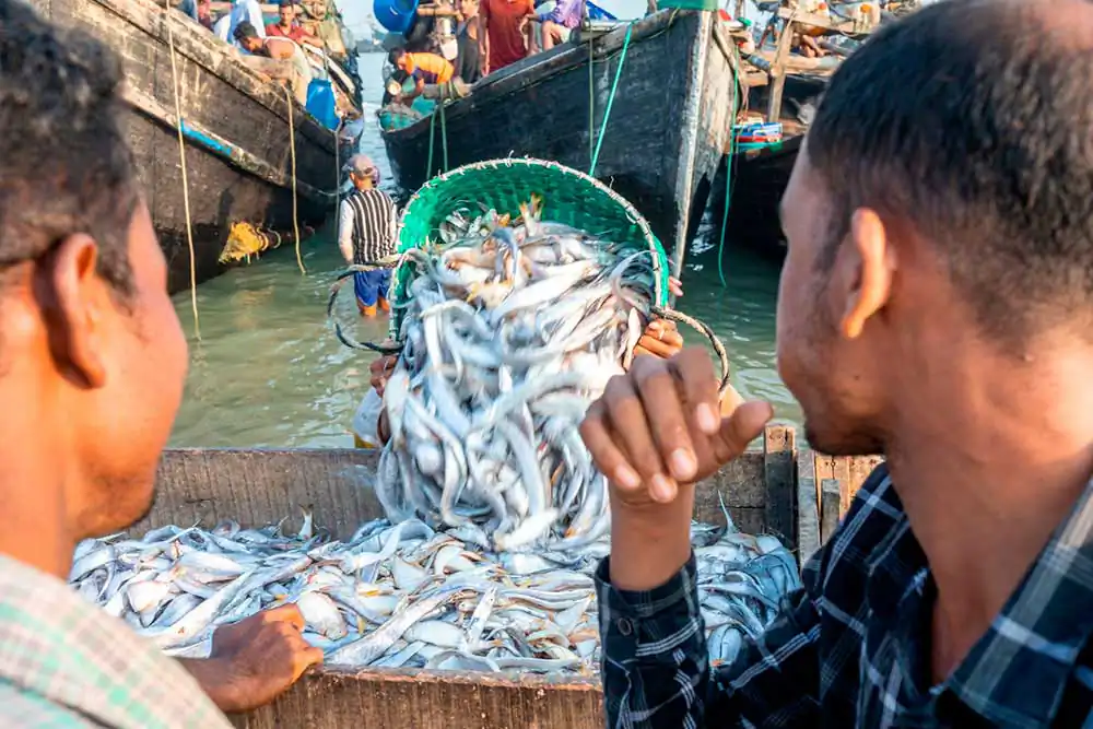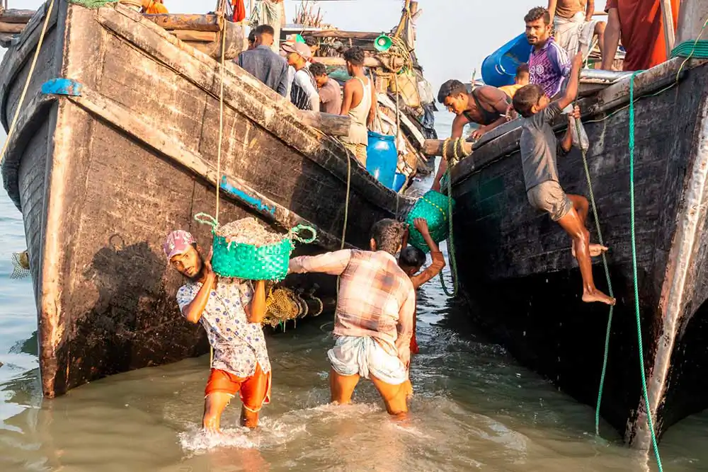 Bangladesh, located at the Bay of Bengal, has the longest stretched Sea Beach in the world and fishing is a traditional way of food supply and economic income. Along the shore there are many small fishing villages dotted along the beach.