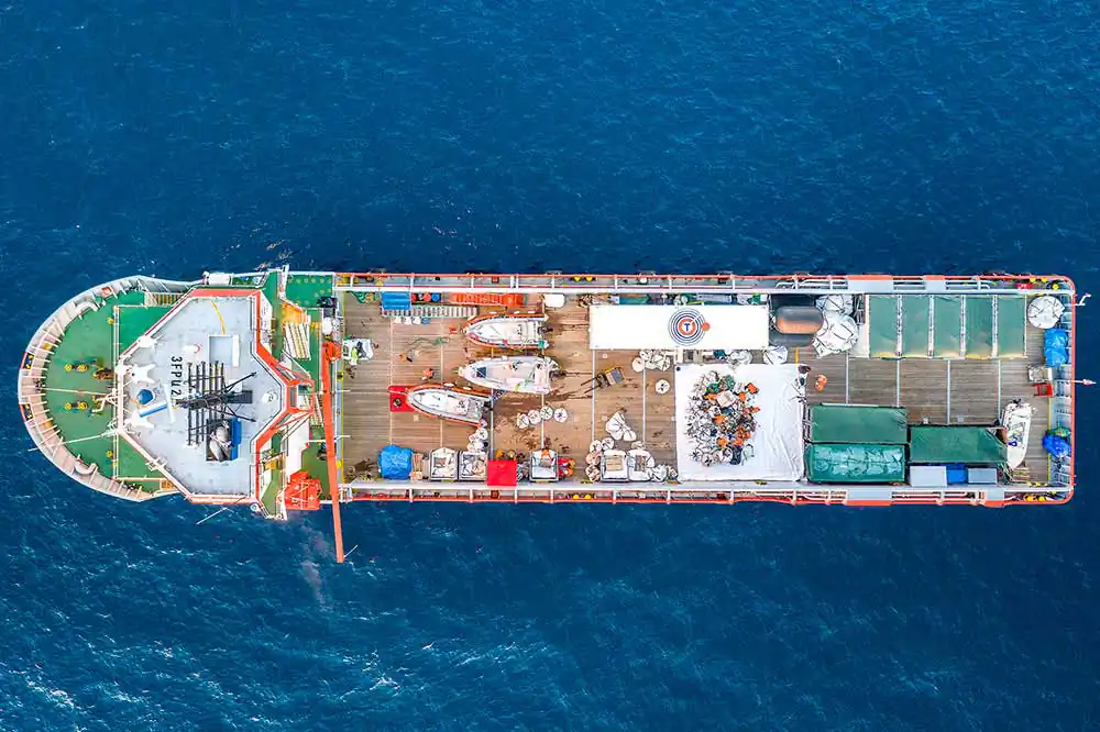 The Typhoon stayed in the island for 14 days and cleaned 22 beaches. The crew covered 4.574 meters of shoreline and removed 14,5 tones of garbage.