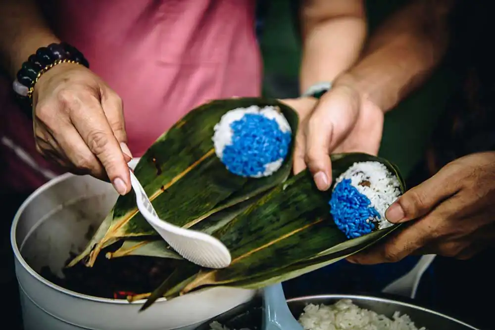 Vivid blue or brown, pyramid-shaped and wrapped in bamboo leaves, these traditional dumplings, Nyonya Chang and Bak Chang, are the cornerstone of Baba Nyonya food culture in Melaka. They are attractive. They are mouth-watering. They are addictive.