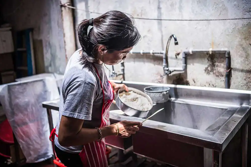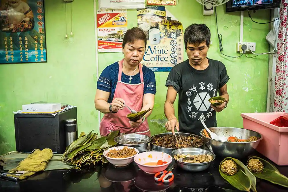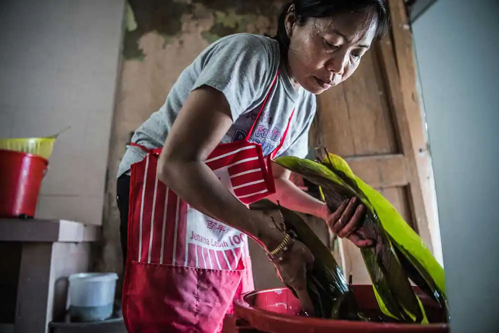Now in her fifties, she learnt to make dumplings from her grandma when she was a kid. In 2003 she started her own dumpling business, and soon her authentic Chang became well known in Melaka and even in Singapore. Making on average 2’000 dumplings per week, she couldn’t cope by herself and hired a few assistants to meet the ever-increasing demand.