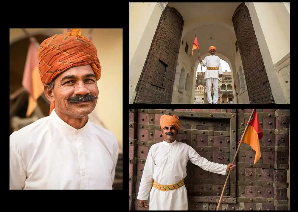 60 years old, handsome Sharad Kumar Mishra is a native of Mandawa village and comes from a Brahmin family. His father was a Pandit. He works as a guard at Mandawa fort and working for last 11 years, unconditionally. Originally from Nangli village near Ramgarh, Bhuvan Singh comes from the agricultural background. He is working as a guard at Mandawa Fort for last 9-10 years. Most of the time his main duty is at the main entry gate of Mandawa where he greets visitors with his welcoming nature. Sultan Khan, 71 years old, is a worker at Mandawa fort and joined in 2016 only. Sonu,  73 years of age, has served 40 years of his life as a worker/security. Along with these people, Jasaram who is from the Mandawa itself takes care of the Fort garden area and his 40 years of hard work can be seen in the inner fort area with lush green carpet ground. Virender who comes from Mahroli village is working as an electrician for several years in the fort.