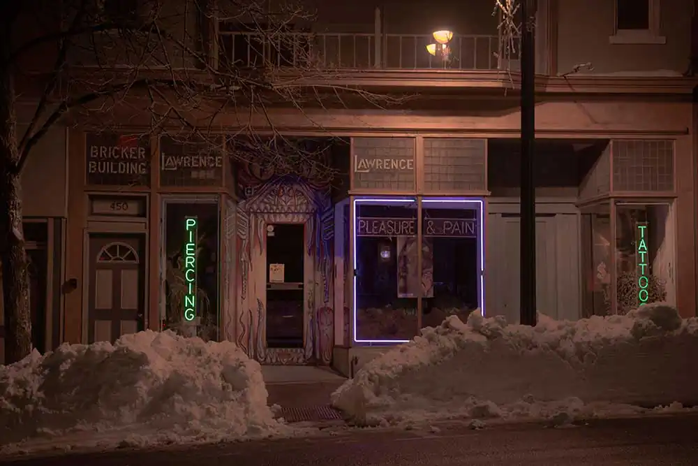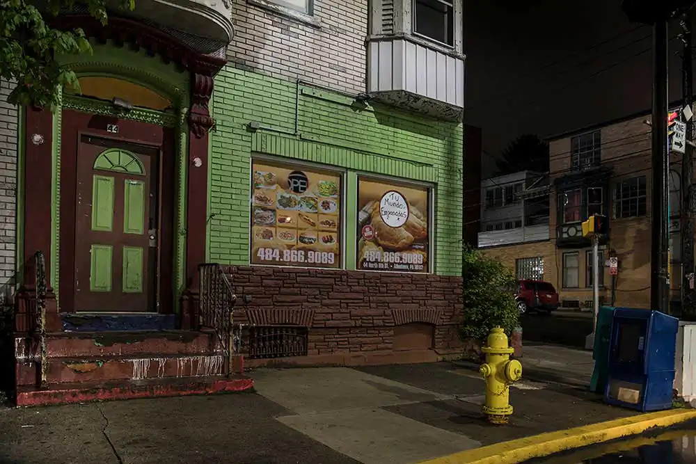 The series “Easton Nights” began in late 2015 as an exercise in night photography, inspired mostly by the poetic shots of George Tice. The exercise soon evolved into an obsession, not just with the night or night photography.