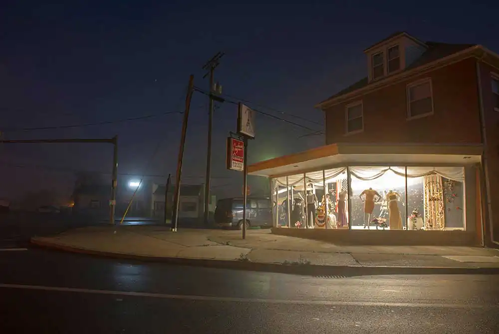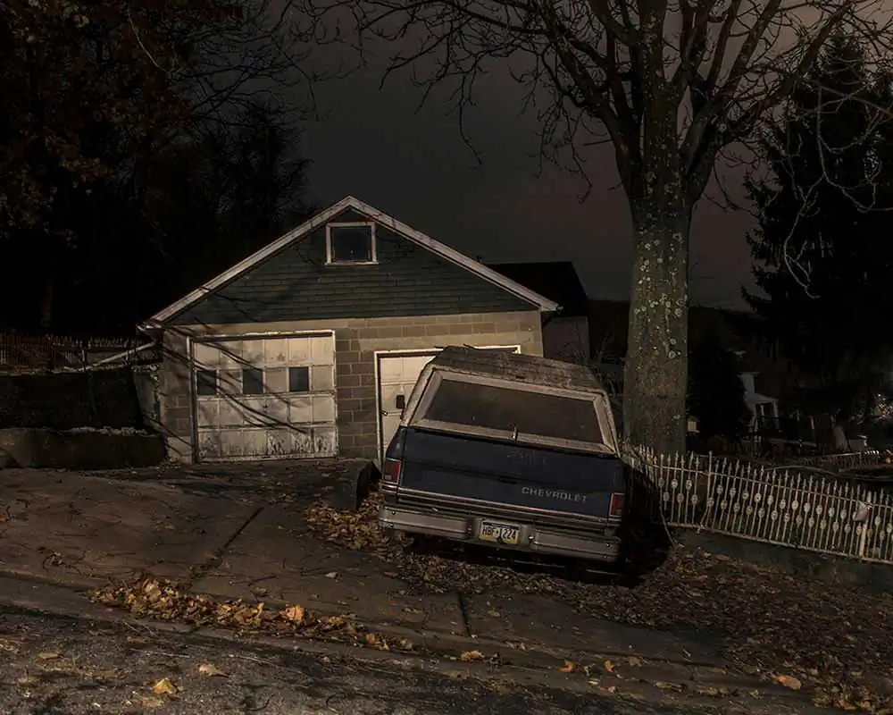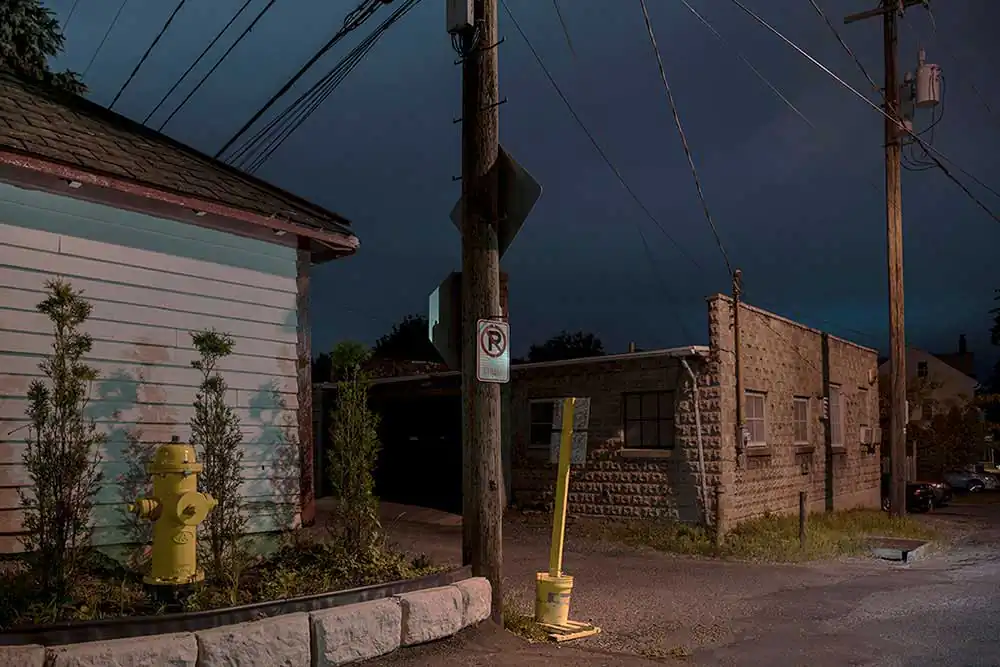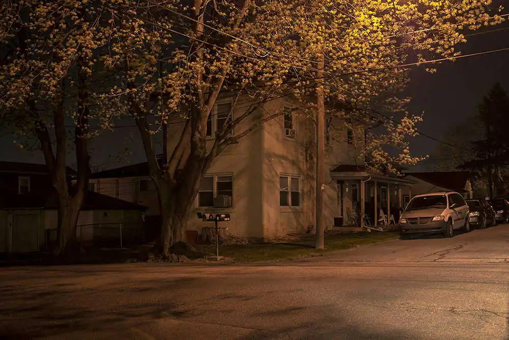 The series “Easton Nights” began in late 2015 as an exercise in night photography, inspired mostly by the poetic shots of George Tice.