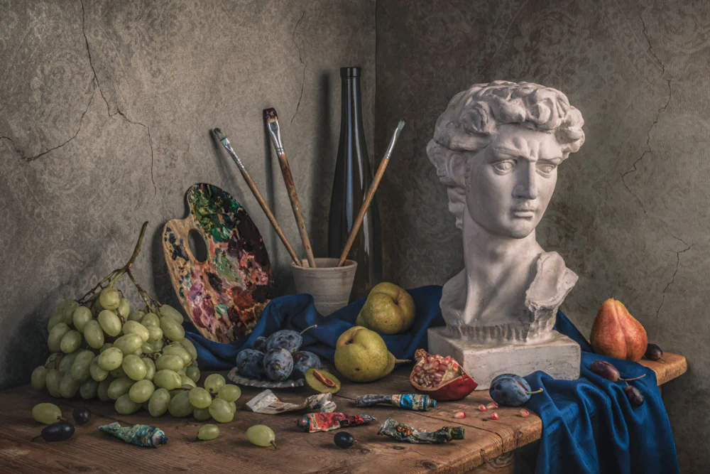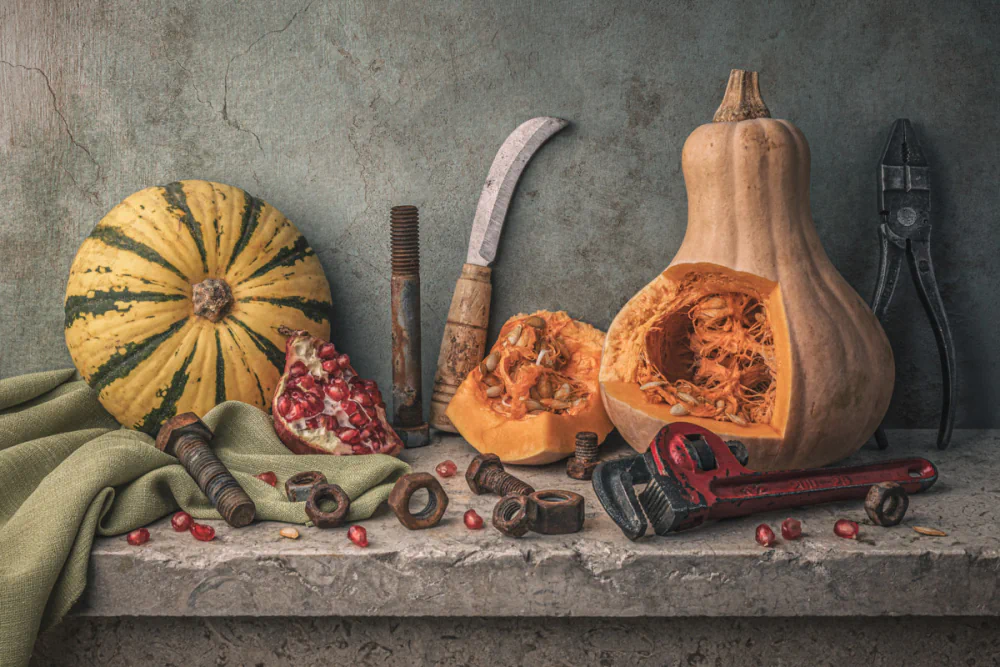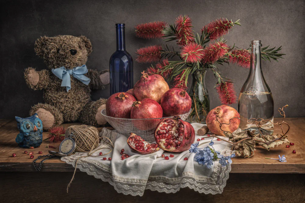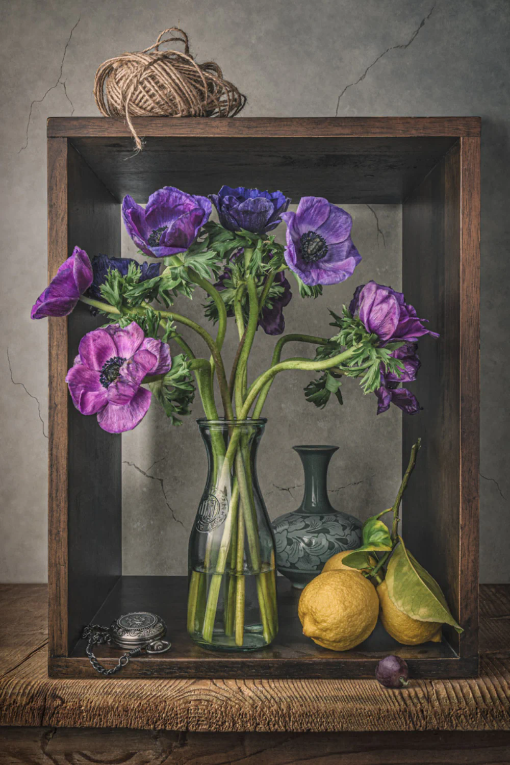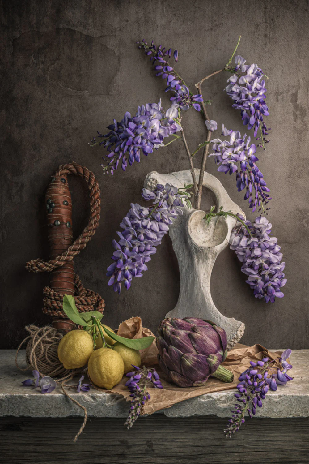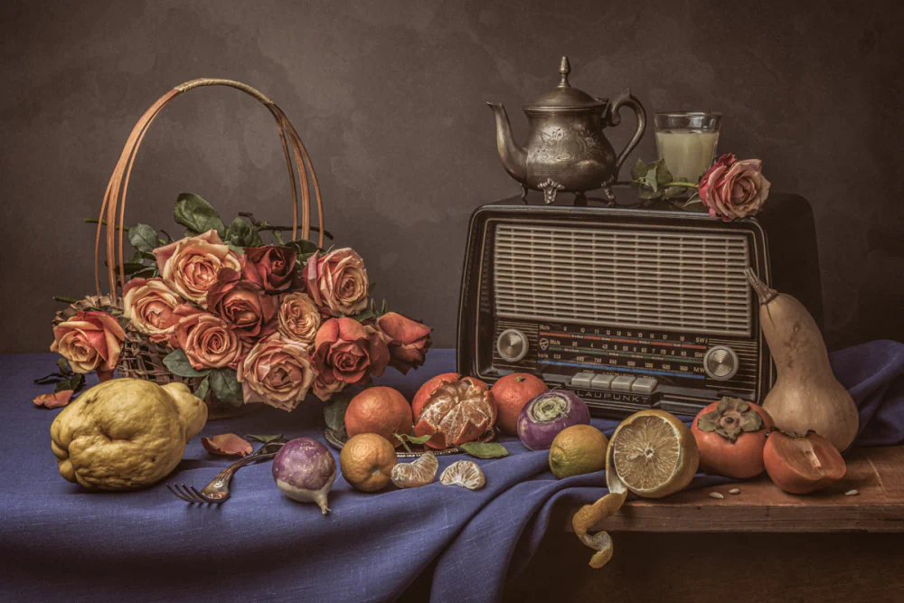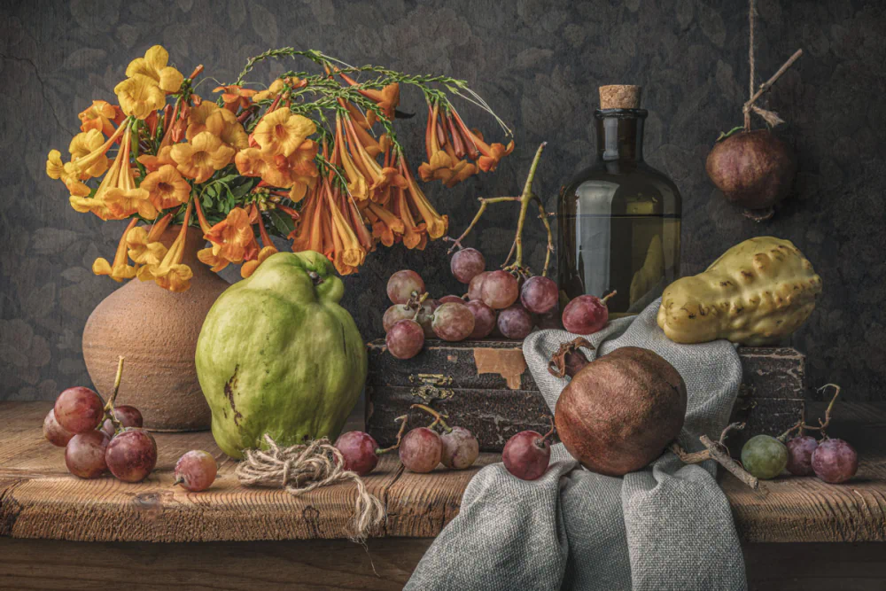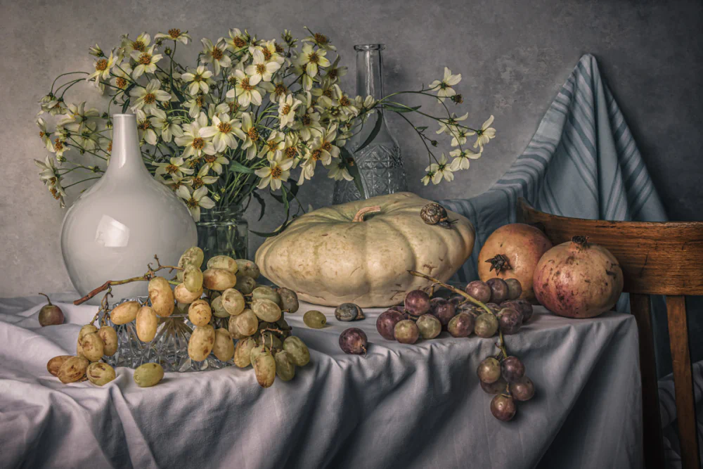 Digital editing is an essential part of the creative process. Through post-production, the original photographic image evolves toward a painterly aesthetic inspired by the visual traditions of Renaissance and Baroque painting. The intention is to create images that evoke the feeling of classical still life artworks, blurring the boundary between photography and painting.