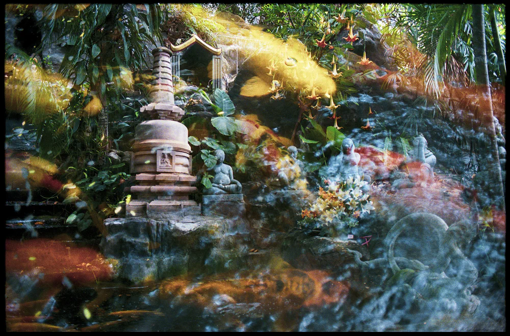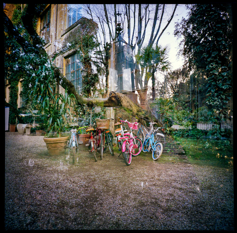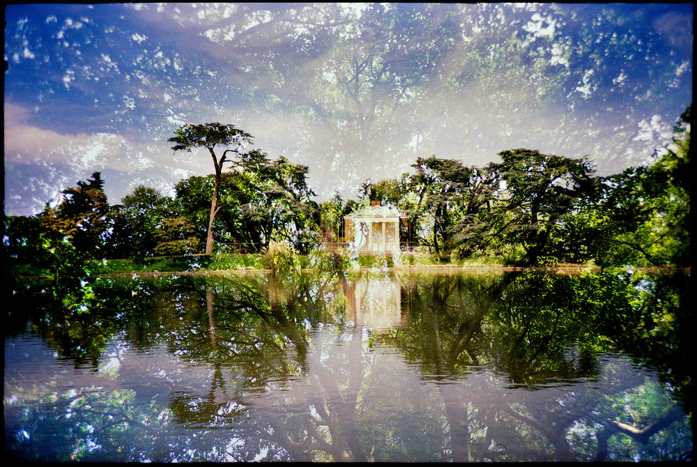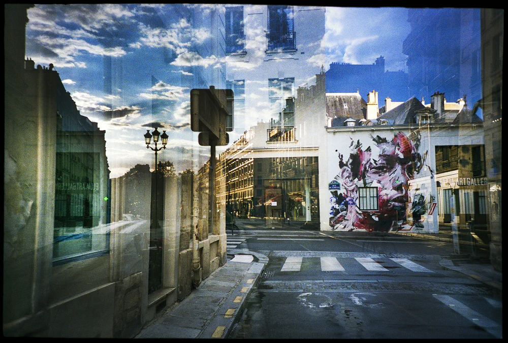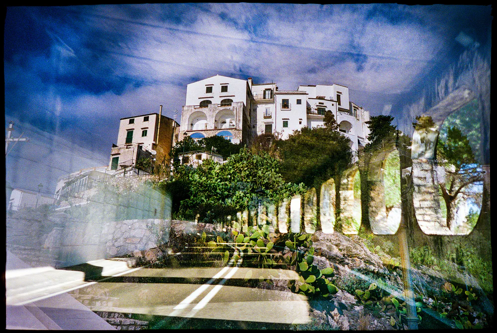 All images were taken with 35mm and 120mm film cameras using ISO 100, 400, and 800 color film, applying the double-exposure technique. This process creates a balance of colors, shapes, and symmetries, layered with additional perspectives and appearances that sharpen the imagination and lead the viewer toward new forms of beauty and visionary abstraction.