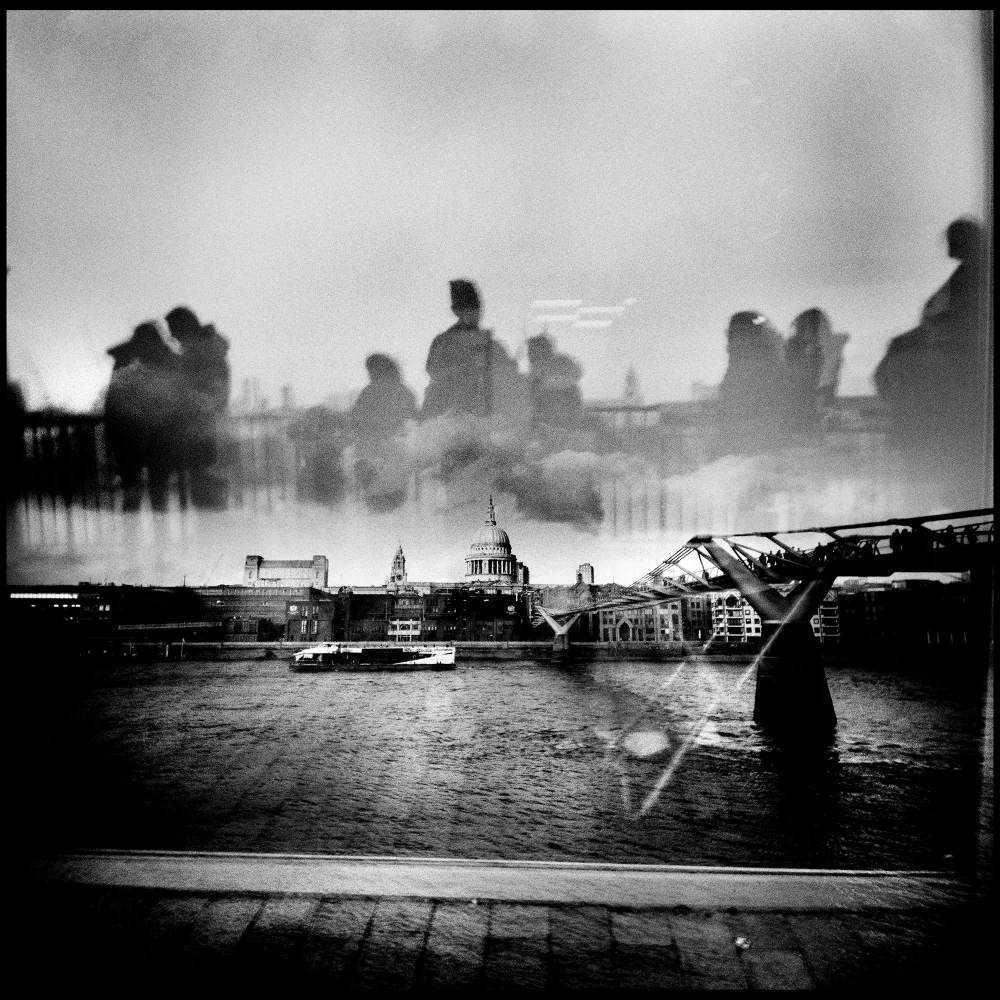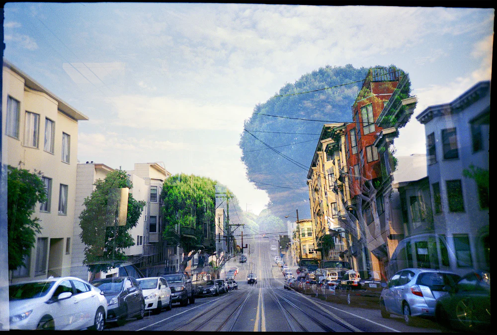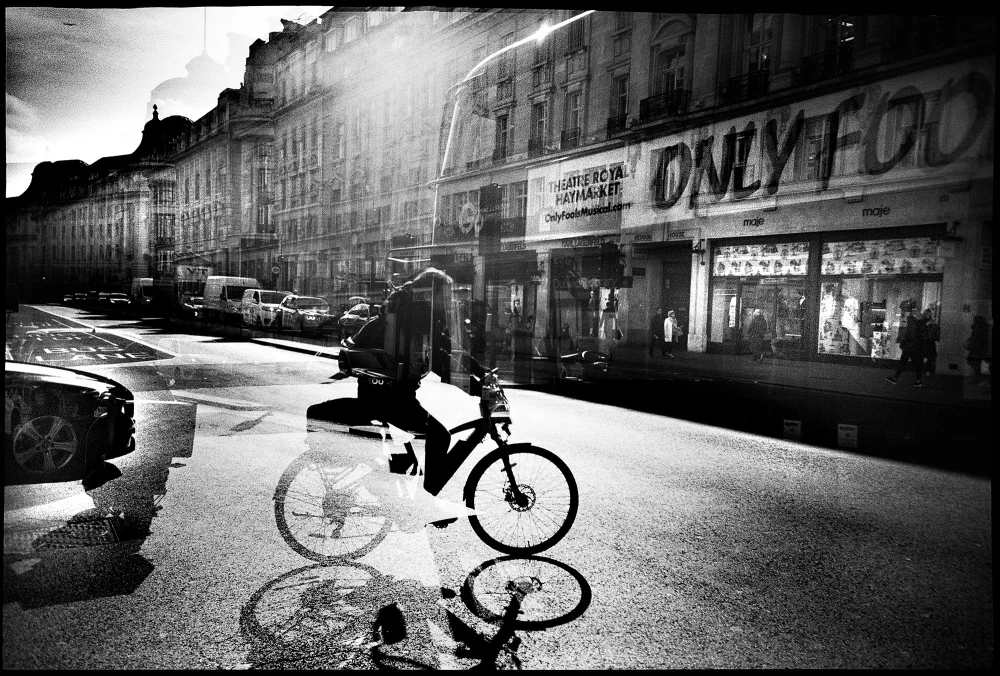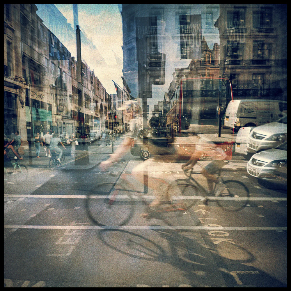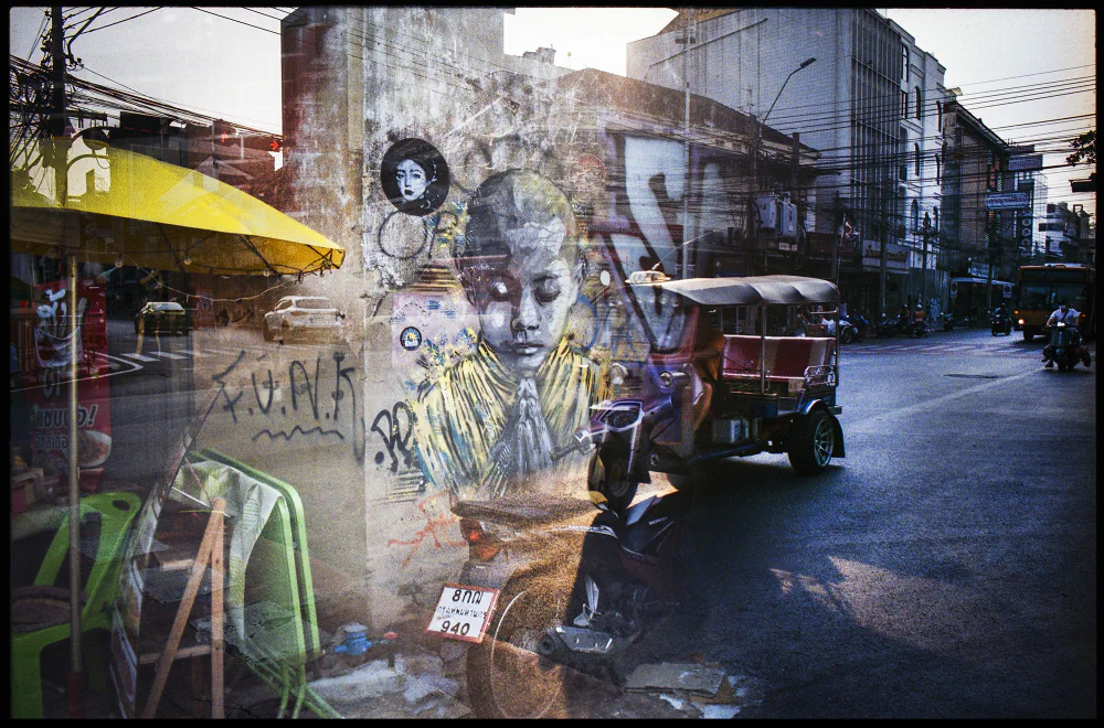 “When I shoot double exposures with my 35mm and 120mm film cameras, in both approach and style, I try to capture the true essence of a city or a place. What I want to convey is my perspective of ‘what you see is what you get,’ by capturing those unique moments as I encounter them. Double exposure allows me to do this while also taking the images to another level, where I can be more creative by holding double-layered scenarios that offer the viewer a magical, almost surreal perspective and a sense of unnatural futurism.”
