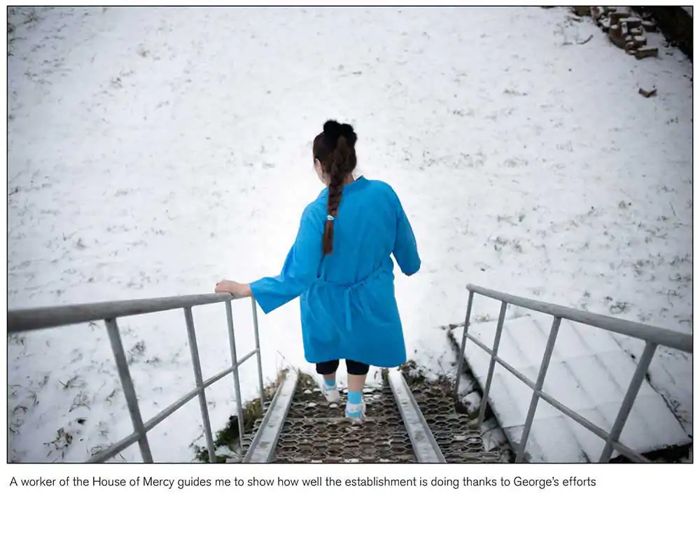 The driver, Sergey, suffered from a medical malpractice: in 1990 he was appointed a lumbar puncture which was then carried inaccurately; he hasn’t been able to walk on his own ever since. He visits George since 1992 on a regular basis to receive a blessing.