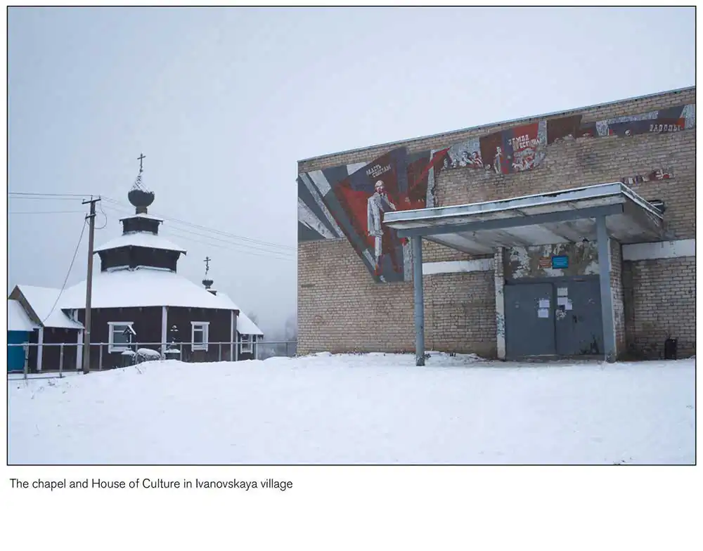 Besides, George helped organize the restoration of the roof of a local school and promoted the construction of a chapel near a Soviet-era House of Culture. The slogan „Power to the soviets, land to the peasants, mills and factories to the workers“ still can be read on the remains of the mosaic on the building.