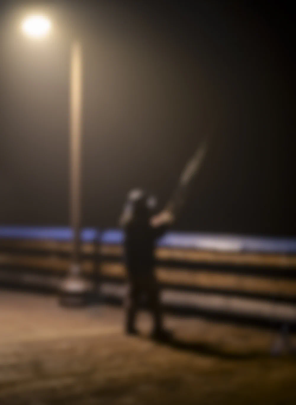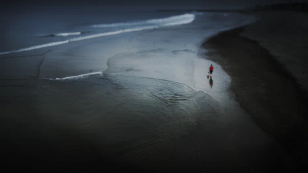 Across the series, the work explores the fragile relationship between human presence and the vast environments through which we move. Figures appear along shorelines, on piers fading into fog, or along pathways that dissolve into shadow. These individuals are rarely defined or identifiable; instead, they become archetypal presences that echo the shared experience of moving through uncertain or transitional spaces.
