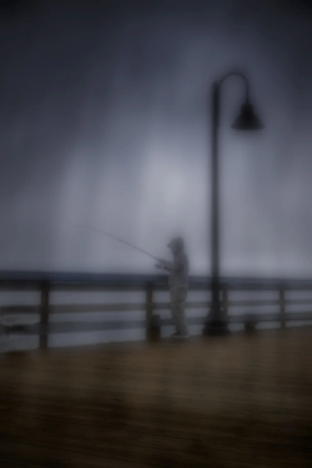 Movement is another essential element of the images. Walking, riding, casting a line, or drifting through water become gestures that anchor human life within a larger atmospheric environment. Through this interplay of motion, color, and light, the photographs invite the viewer to inhabit the ambiguous space between perception and emotion.