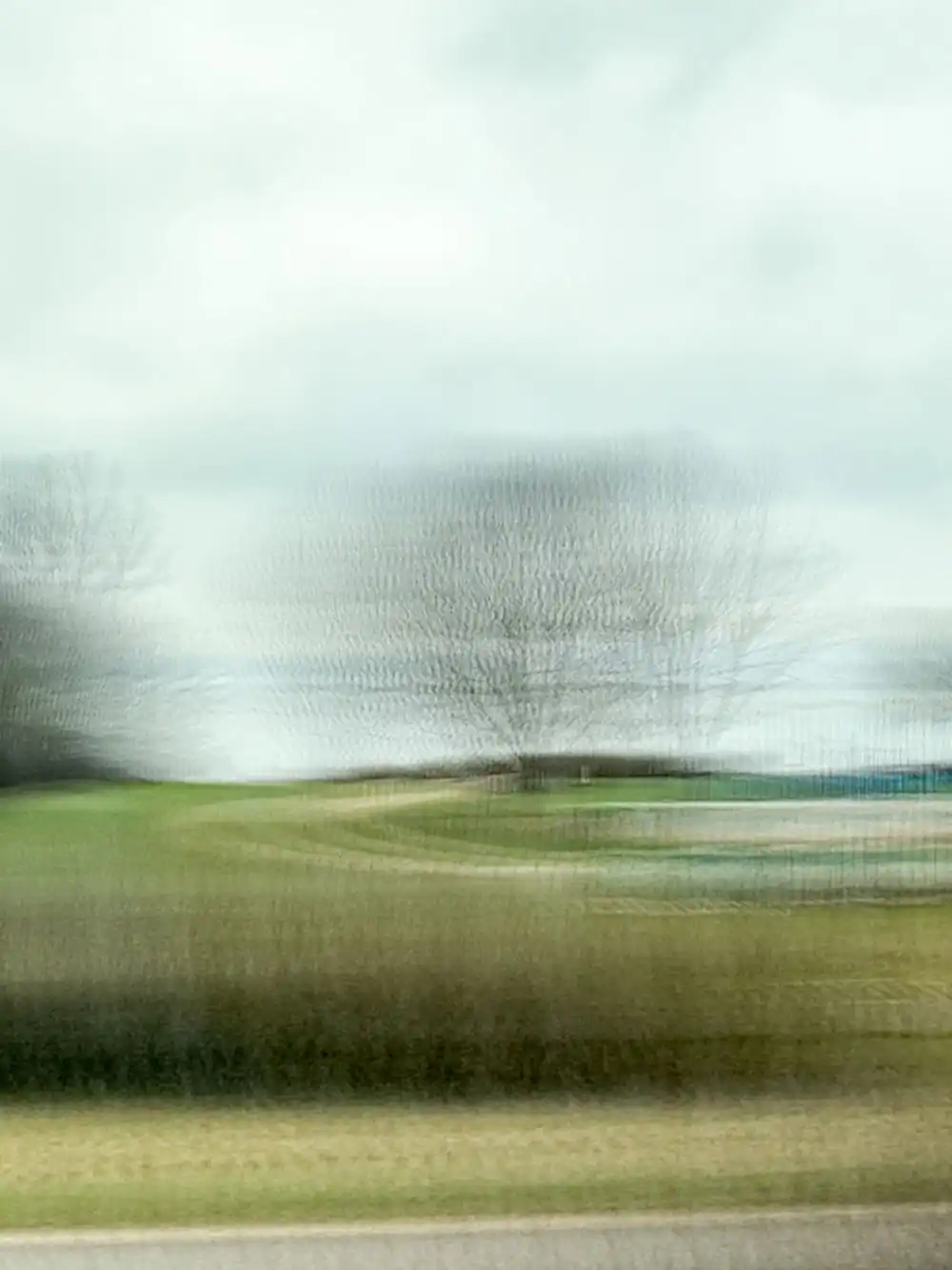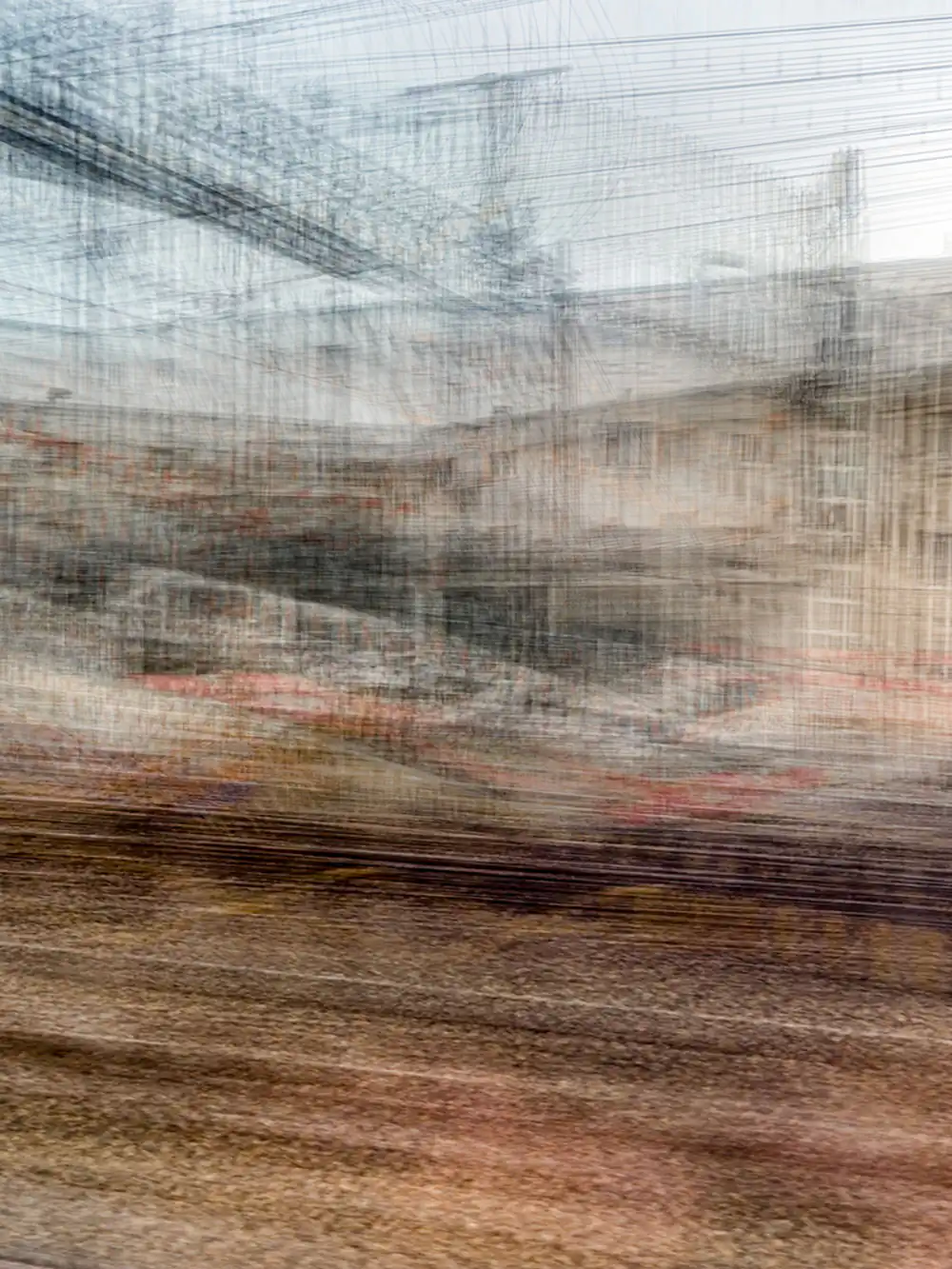 The images express what I see out of the corner of my eye through the train window when I’m preoccupied. They also represent what I miss in those moments. They are blurred, fleeting, and subjective snapshots of an everyday world to which I often pay too little attention.