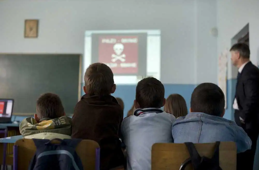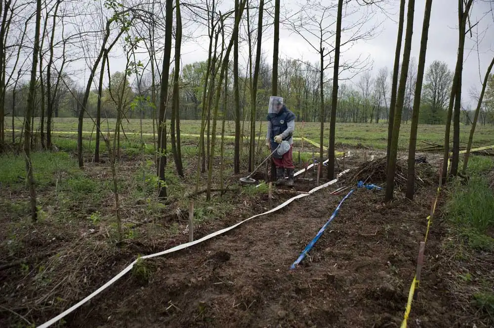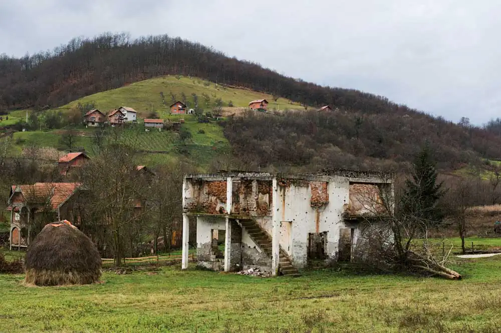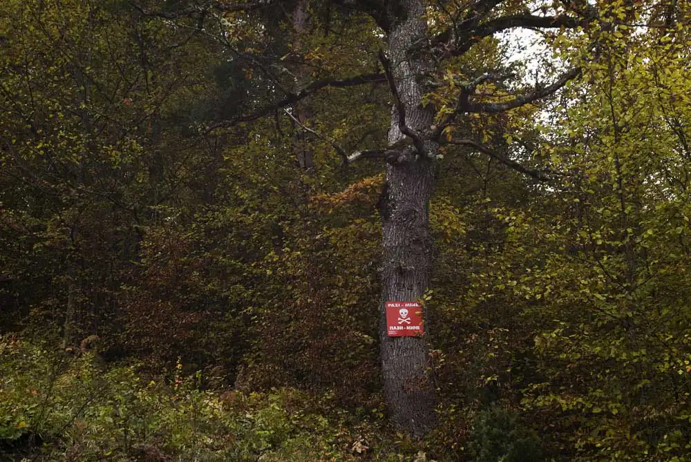 When you travel through Bosnia you can’t escape the sad view of all the wrecked houses, covered with bullet holes. The traces of war are there to be found everywhere. For instance warning signs for mines on trees. It will take many more years for the Mine action teams to clean the country.