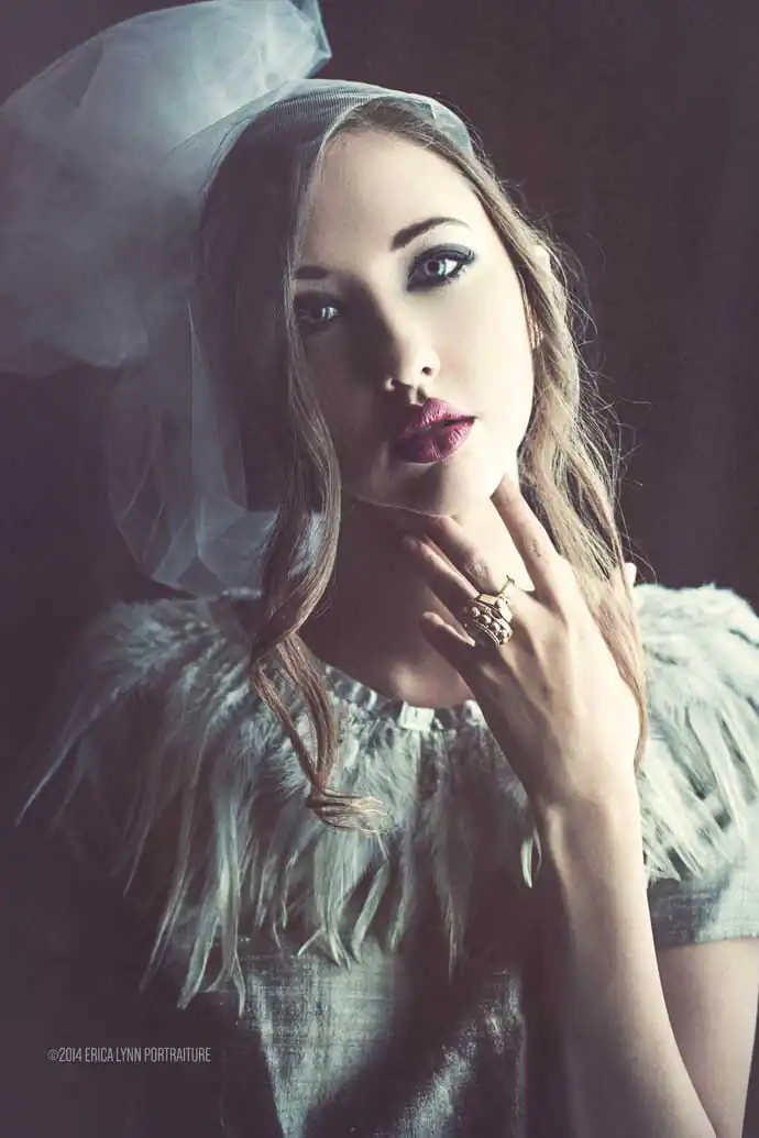 I don’t have any formal training in photography. I have taught myself what I know so far however, I do have one friend who believed in my work so much that he graciously helped me as much as he could. He let me borrow his lighting and backdrops and taught me what he knew about lighting. Some of it stuck with me, some of it didn’t. I used to hate working with shadows when I first started out. I didn’t think women should have shadows cast on them in photos, I didn’t feel it was feminine. While I still feel that way for headshot portraiture of women, I have done a complete 180 with my fashion work. I love shadow play so much. There is something so mysterious about a portrait of a woman with a dark shadow cast on her. It creates a mood and a feeling of mystery and for me personally, it draws me in. It makes me want to know more about the character, who she is and what she is all about.