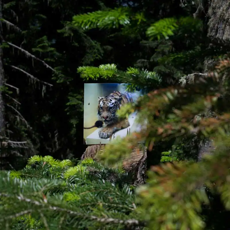 “Escape from the Museum of Zoology” series is an attempt with the help of artificial combination of natural and museum space to draw attention to the problem of animals and birds extinction. The author places pictures of stuffed animals taken in museums in those landscapes that are their natural environment, raising the question of the civilization development consequences and the balance between research activities and efforts to safeguard wildlife [Official Website]