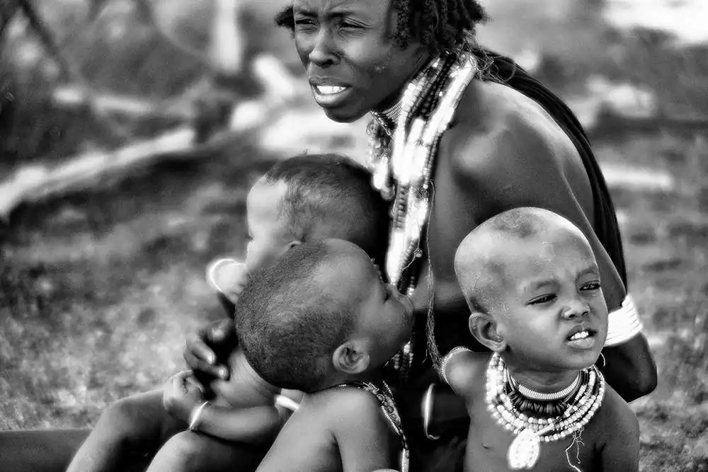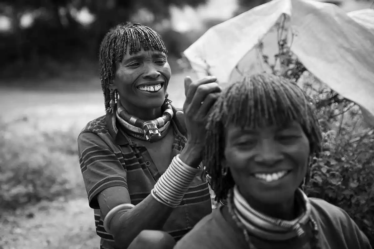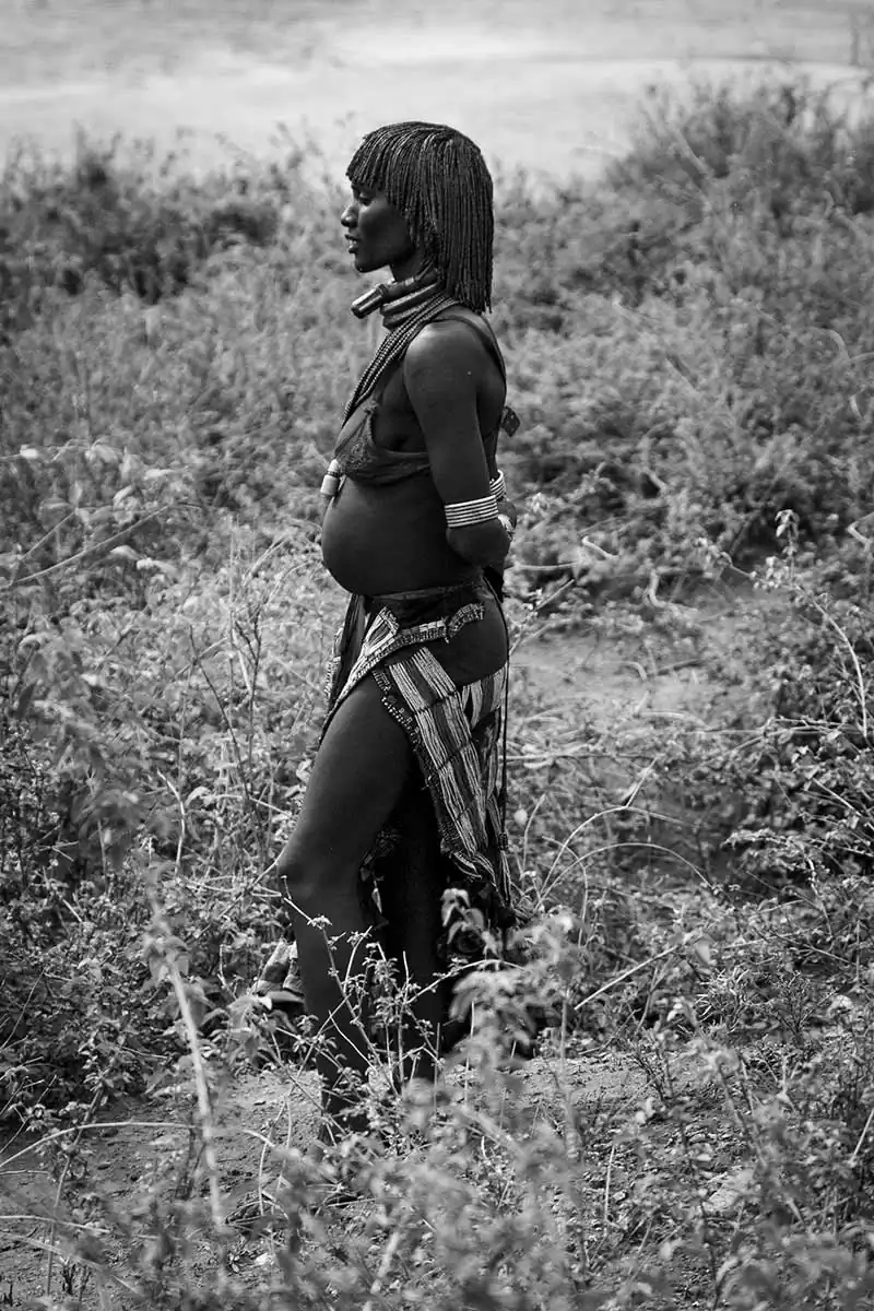 The Hamer tribe is the most numerous and women, despite having vital roles, must submit to the will of the chief of the tribe and to deep-rooted traditions and as in other tribes, they are discriminated against, subject to abuse and violence. Ancestral rites lead to skin stripping, to wearing leather rings when contracting marriage or to undergo whipping to be interesting in the eyes of the man who will have to decide who to marry. They use to color their hair by intertwining it with ocher-colored powder, animal fat, they wear skins and jewels of various colors and features, bells at the ankles and a large ring covered with leather as a sign of loyalty to her husband. They live half-naked even though now women have discovered the bra and show it off with pride.