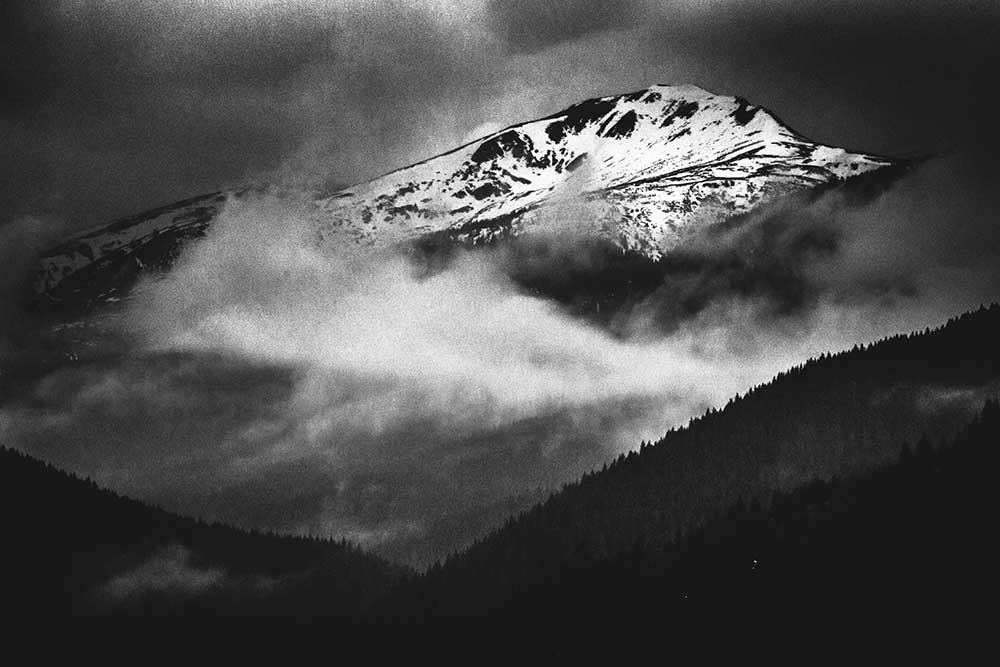 “Europe in silence” is a multi-year project focused on documentation of unique sites, which due to exploitation and escalating landscape degradation are subject to metamorphosis, which resulted in the need to register places initially in Poland, through the Carpathians to Romania, Serbia, Bosnia and Hercegovina and more distant due to the active volcano Etna whose eruptions are the direct cause of diametrical changes in the environment. Proof of a documentary form of the project is to give geographical coordinates instead of locating names with its own name, sometimes – it does not even exist and yet the landscape seems to be significant because of its character, “endemic” or occurring in the border region. Successively as a unique place emerges a map is created – precisely because of the coordinates that will allow you to define by date, such as minor things and changes can affect the reception of a place or its appearance, shape and form. Color gives expressions just to impress. Hence the need to preserve panchromatics which allows the viewer to cut off the impression of multicoloredness and concentrate on the shape, space, contrast and monumentality of the “figures” presented. It is also a continuation of “old school” and an attempt to make a photo by paying tribute to artists whose works have permanently incorporated into the history of landscape photography. In addition to the separation and operation of the system of zeroes and ones – that is, black and white is a more reliable form, due to the fact that we can color through, direct the viewer to a given part of the image. The black-and-white form is “pure”, and by a bit of the author’s interpretation it should cast the essence of the place and paralyze the viewer when interacting with a large-scale landscape.