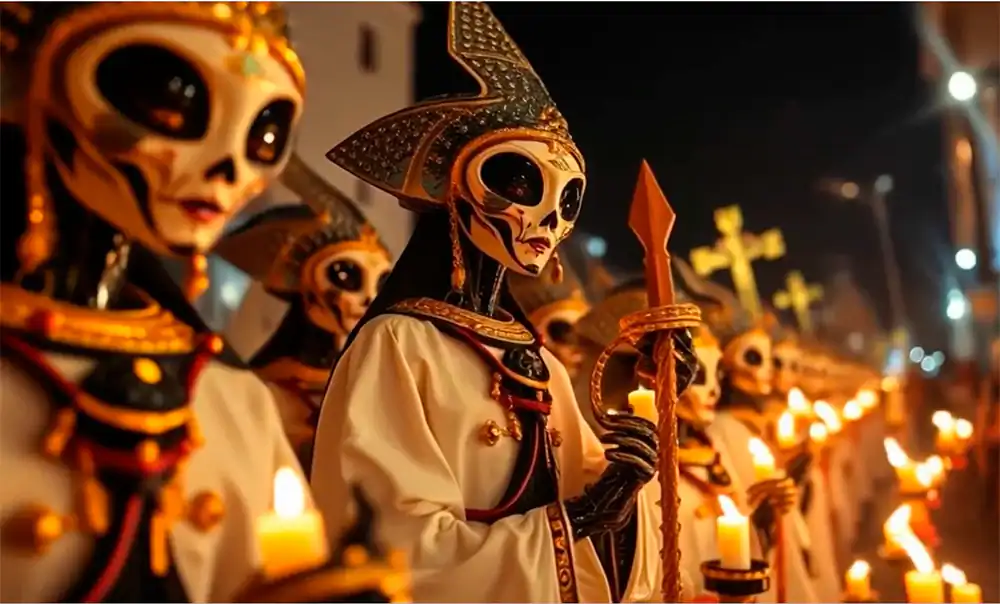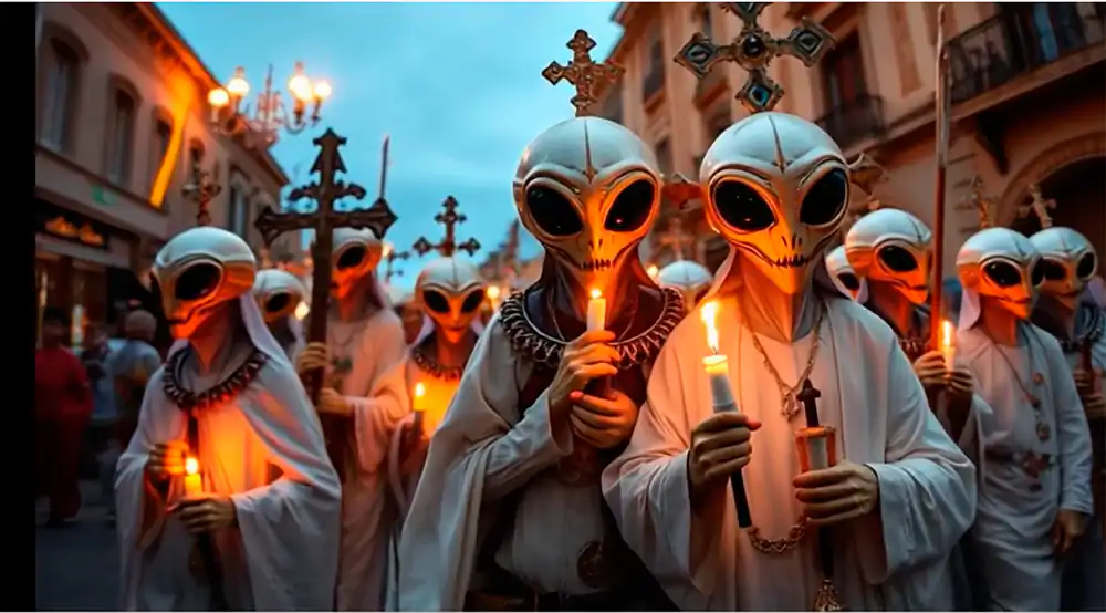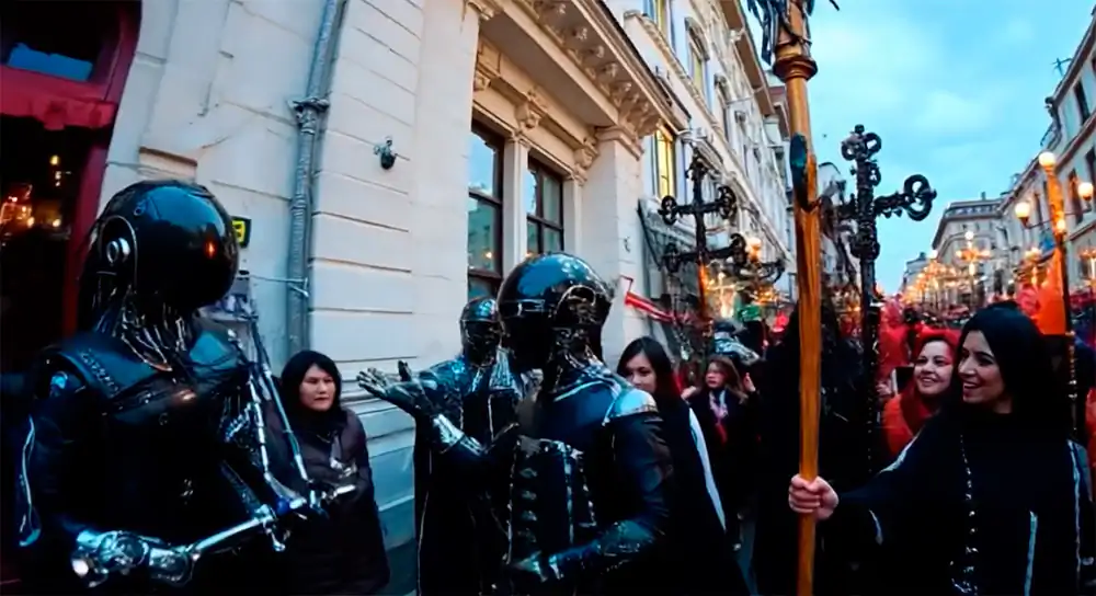 These two dimensions have inspired Juan Pablo who, as a photographer and visual artist, has created this clip, assembling videos generated entirely through artificial intelligence. The message the artist conveys is a positive one (or a positive metaphor) of integration: other races, beings from other planets, or robots will participate in our traditions.
