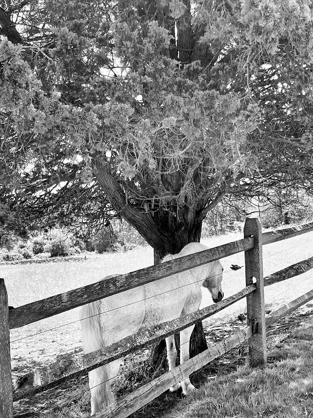 As a photographer, this summer I became acutely aware of the ocean’s presence in unexpected places—boundless yet elusive. I decided to document her influence without revealing her face, capturing evidence of her presence in the most natural ways: in the weathered wood of a doorframe, the rust on a lamp, a lush pasture alive with horses, a garland of sea grapes washed up on the shore—environments where time occasionally seems to stop.Thoughts of the ocean were everywhere and nowhere, guiding every shot. The images found me as much as I found them.