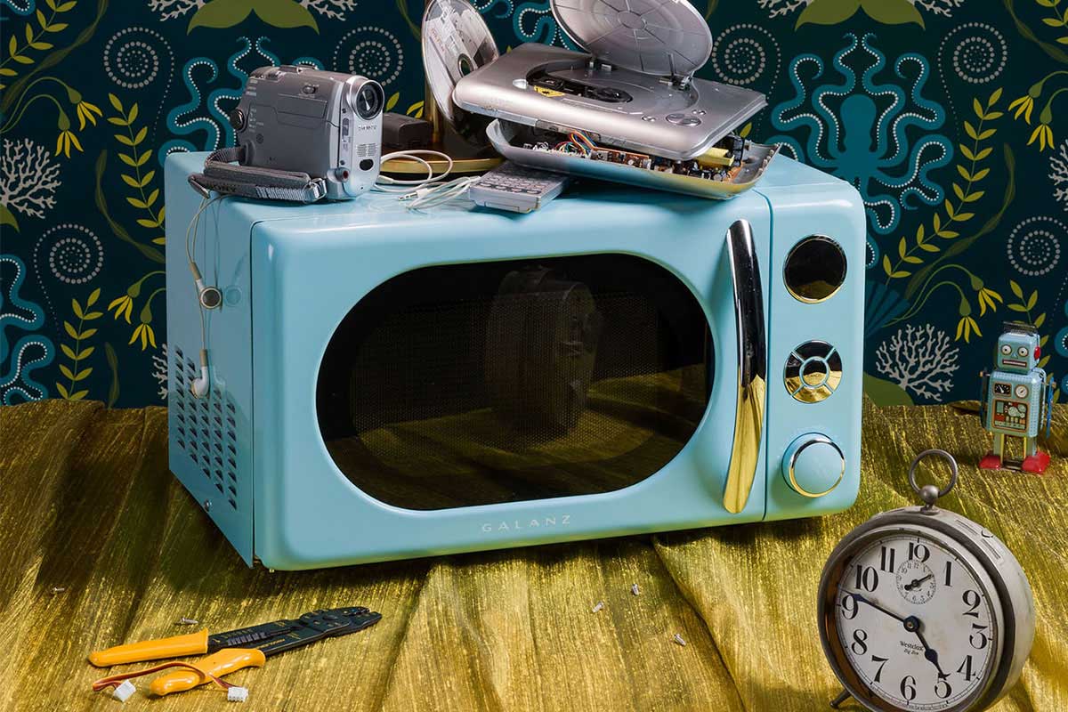 Curious Devices is a newly-released series of photographs by Brooklyn artist Jeanette May, which continues her exploration of beautifully designed vintage technology. The technological tableaus span antique stereoscopes and art deco clocks to Bluetooth headphones. Each object’s style, color, and material construction epitomize a period of both aesthetic and technological advancement. Surrounded by rich silks and damask wall covering, her still life arrangements suggest 17th century Dutch vanitas, and exploding with a sophisticated use of color.