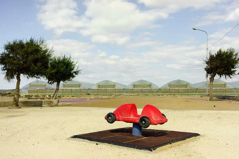Cristaldi says “Suspended is a photographic sequence exploring what is far from Mediterranean stereotypes.  No winking postcards testifying a collective image of lands full of art and nature. No iconic visions of black dressed mamas, godfathers, and religious fests.  Visual sketches, are my landscapes where the city is as old as time and continuous with it. Where every place has been (or is going to be) colonized by man made artifacts.”