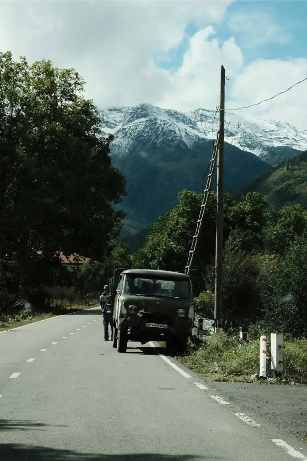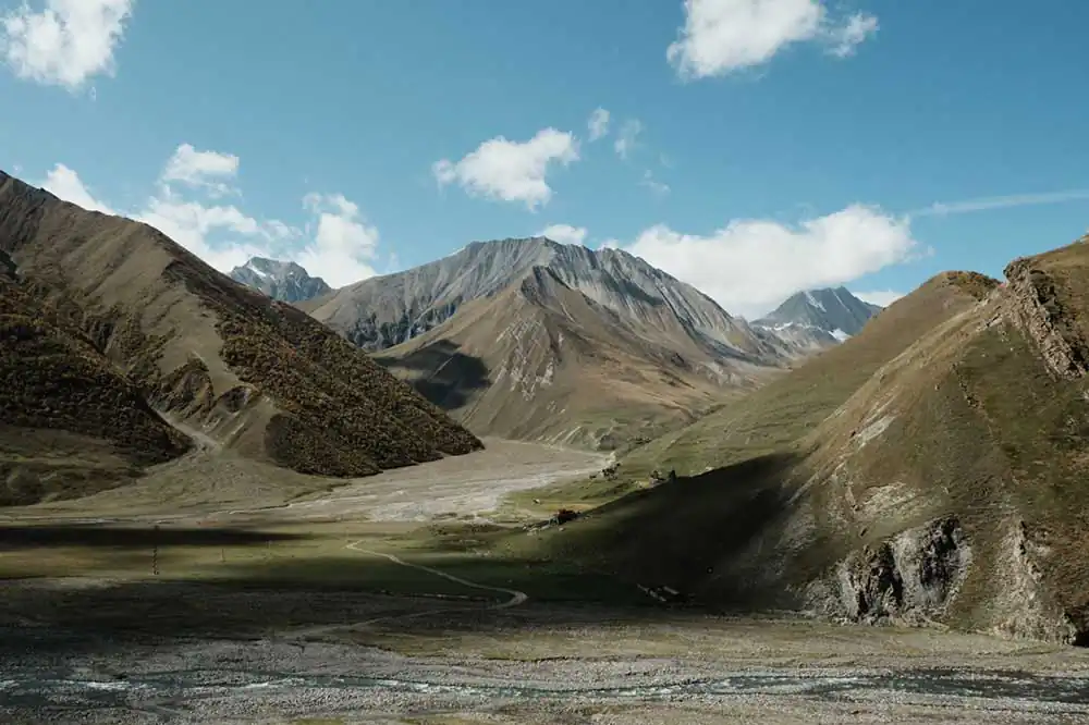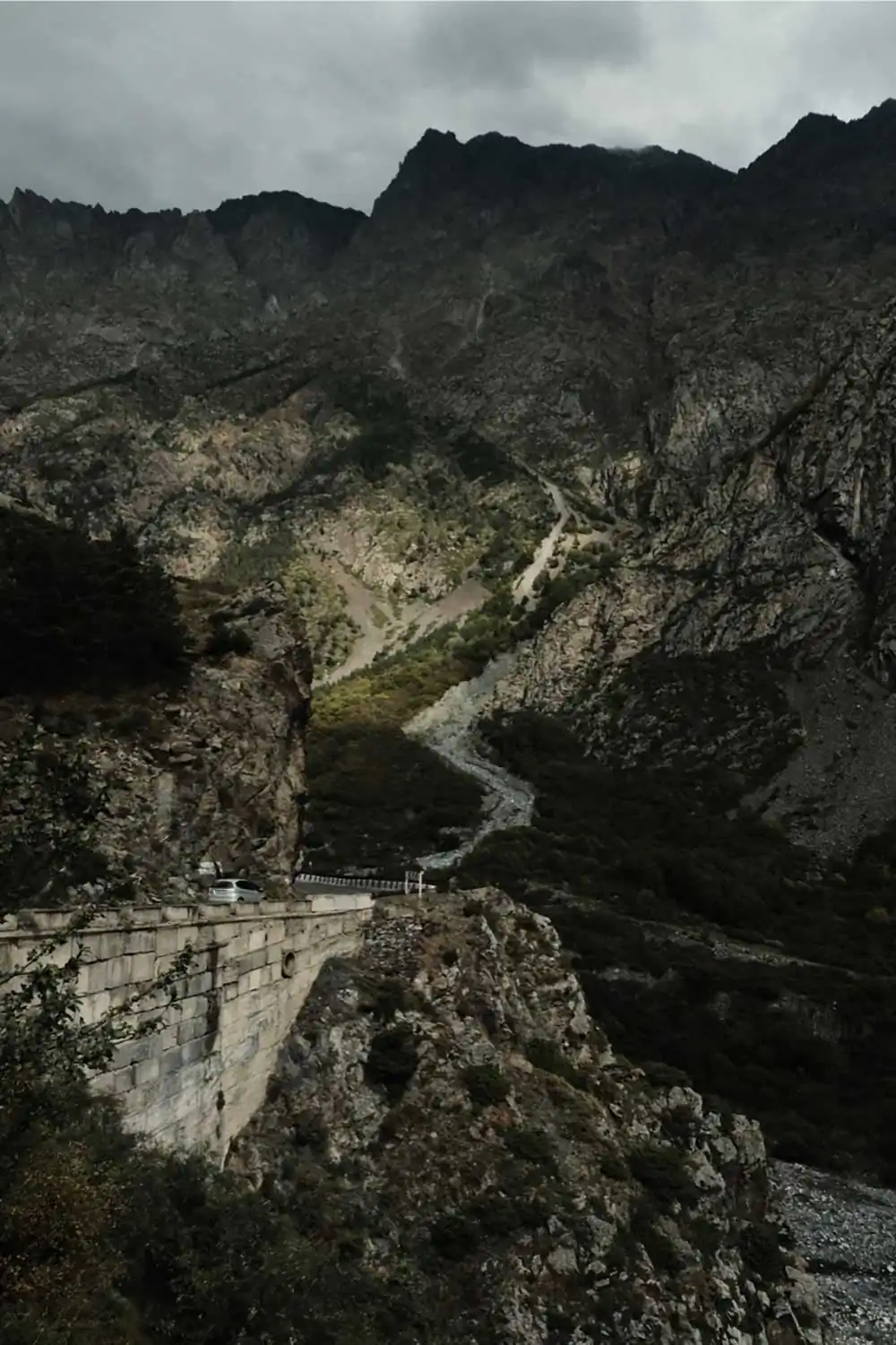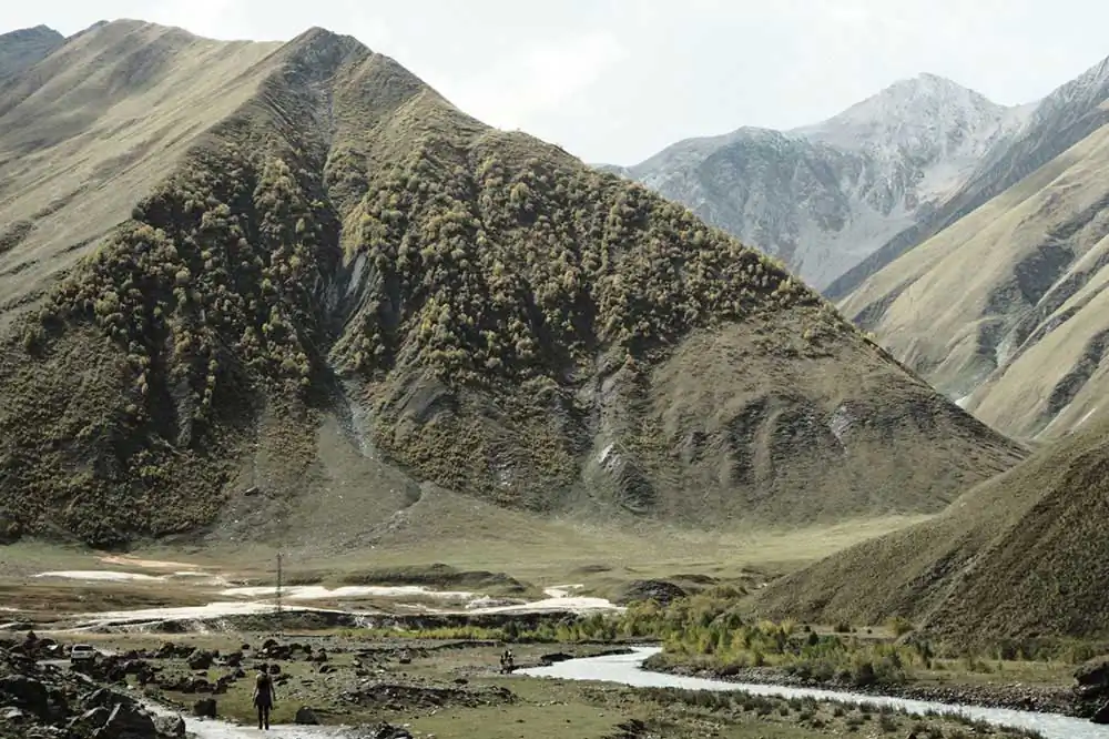 After crossing the highest point in the snow, we were starting our descend. The sun was shining, the view and surroundings mind-blowing, as if it was God’s paradise (as acclaimed by the locals). Suddenly we were forced to stop by the local police force, we went to check and the only bridge was collapsed by a landslide. Since it was fall, there were some real downpours the last couple of days, triggering several landslides, and this was the first of many on our journey. What started as a 1 hour delay was eventually a 5 hour delay. We saw how the locals made a ‘bridge’ from zero and meanwhile socializing, putting up our best non-verbal communication and smoked, ate, drank and laughed together with the local crowd how the ‘engineers’ built the bridge. The small shop before the passage had the most lucrative day in months.