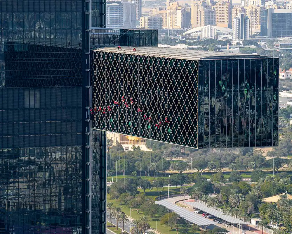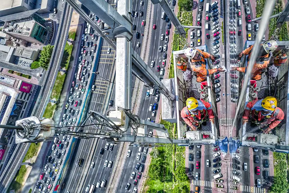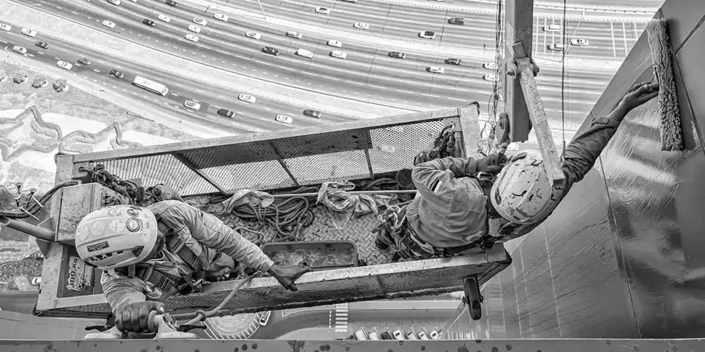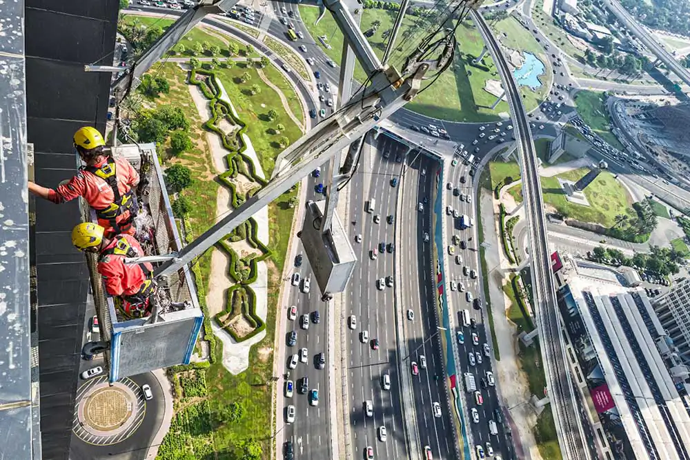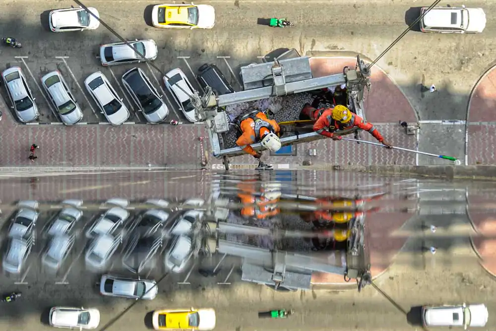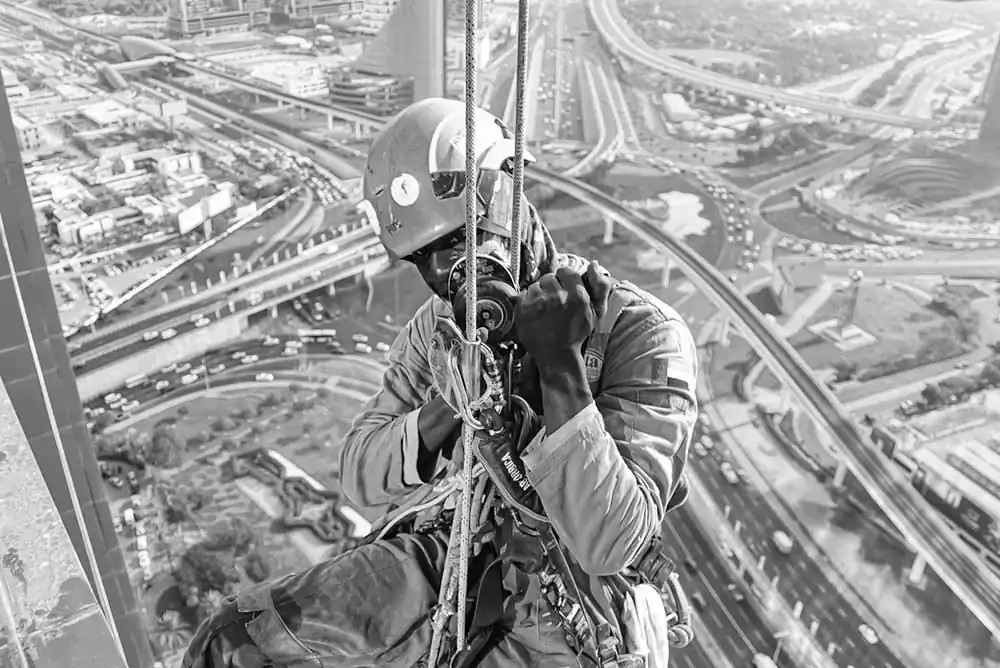 I think the facade glass cleaners have one of the hardest, heaviest and most dangerous jobs in the world  because they always have to work at a very high altitude and usually in hot and humid weather, risking their lives for a small amount of money, but for the love of their families.