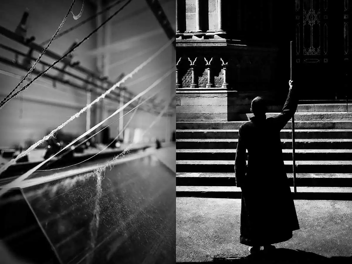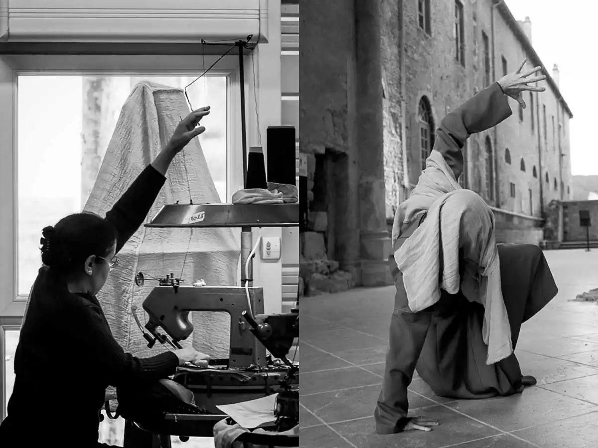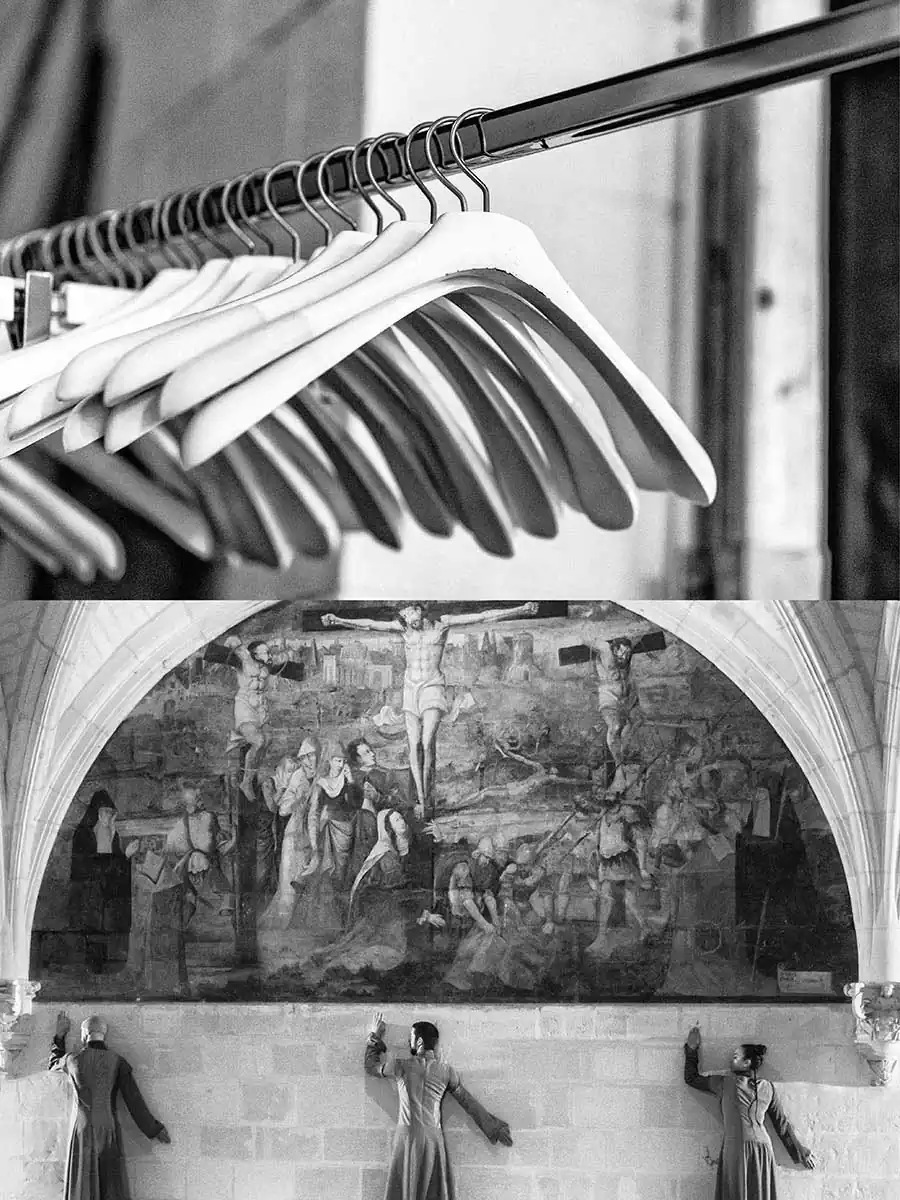 Having discovered 2 or 3 years ago – thanks to an artistic collaboration – the company World Tricot, company specializing in luxury knitwear, which worked for the great couturiers (LANVIN, BALMAIN, KENZO, Jean-Paul GAUTHIER , CHANEL, Yves SAINT-LAURENT, Guy LAROCHE, HERMES, Thierry MUGLER, GALLIANO, Karl LAGERFELD, GUCCI …) until she had to take legal action against one of them who had copied one of their models … the judicial trouble that lasted 7 years the company had to separate a good part of its staff (a hundred people), until the recognition of the offense, and the conviction. During my first visit the machines were all covered with a white sheet and this visual shock made me want to take pictures, so I asked the director and founder of World Tricot Carmen COLLE, who gave me card white for a photographic work within the company, the page being turned … Several short stays have allowed me to make a large number of images, in the perspective of making an exhibition with some of between them. I left this set a little sleepy, and during this period I followed the company of contemporary dance choreographer Nathalie PERNETTE, in his show “The figure of lying” given to the Abbey of Cluny, the Basilica of Saint-Denis, at the festival “Scenes of the street” in Mulhouse, at the festival “Chalon in the street” at the Abbey of Fontevraud … At the end of the realization of this series it turns out that the company World Tricot has resumed an activity, following a crowdfunding operation, with several productions marketed under the brand Angèle Batist … Along the way I found that we were in similar “logic” where it is a question of getting up, to be reborn … thus was born the idea of bringing together these two destinies seen by a photographer …