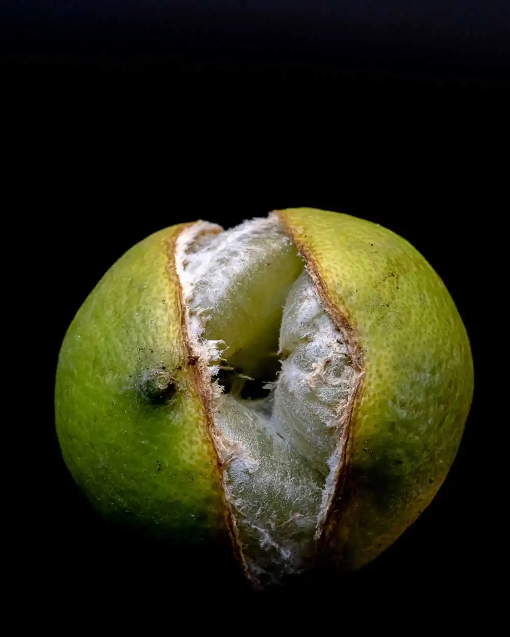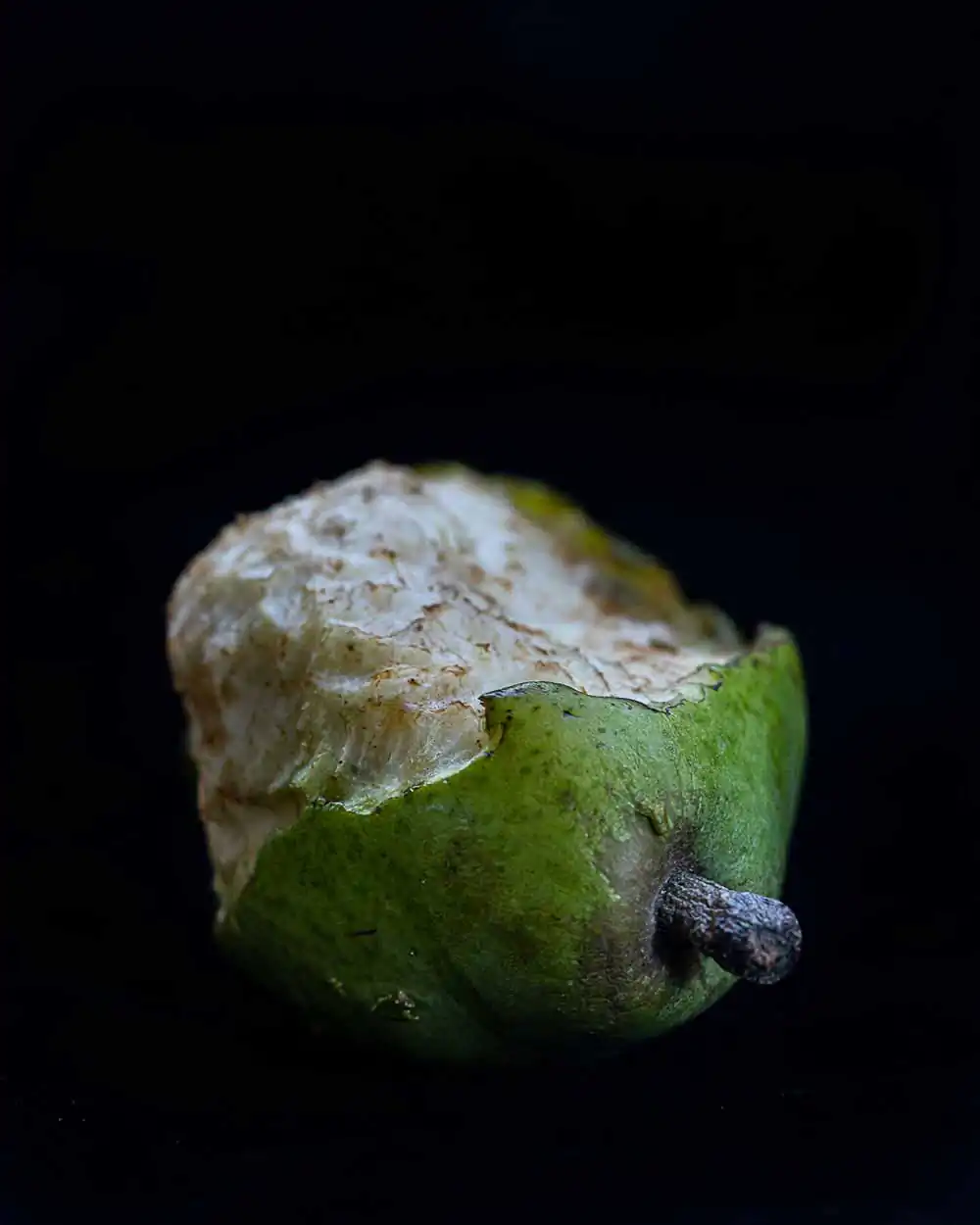 But upon inspection — or perhaps introspection — these forlorn subjects also suggest more intangible themes of transience and decay.  They seem dejected, eliciting a strange sense of misplaced empathy, and I find myself photographing them as though taking their portraits, attempting to lay bare the beauty of their intrinsic fragility.  Perhaps I find these objects so intriguing because the state feels somehow familiar.  Altered by time, imperfect by circumstance, I recognize my own vulnerability to the forces of nature in every defective piece of fruit.  [Official Website]
