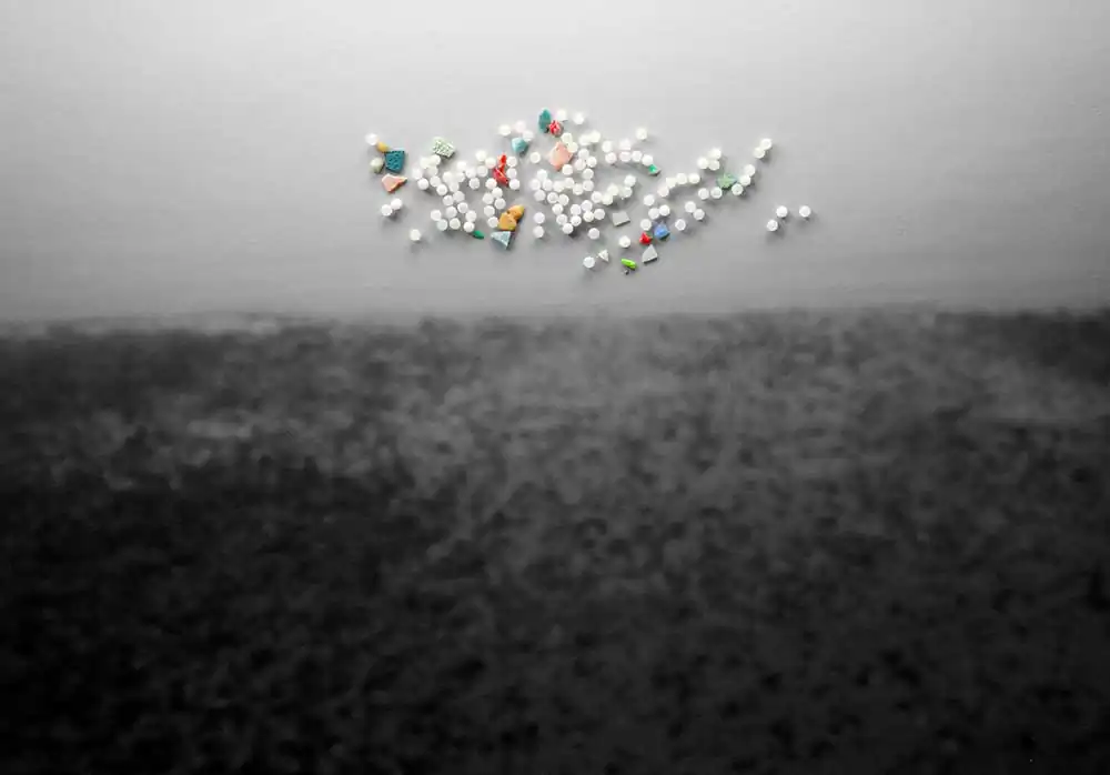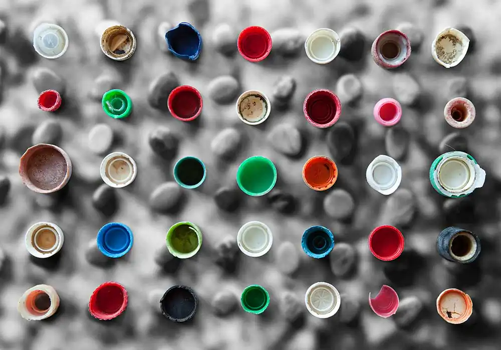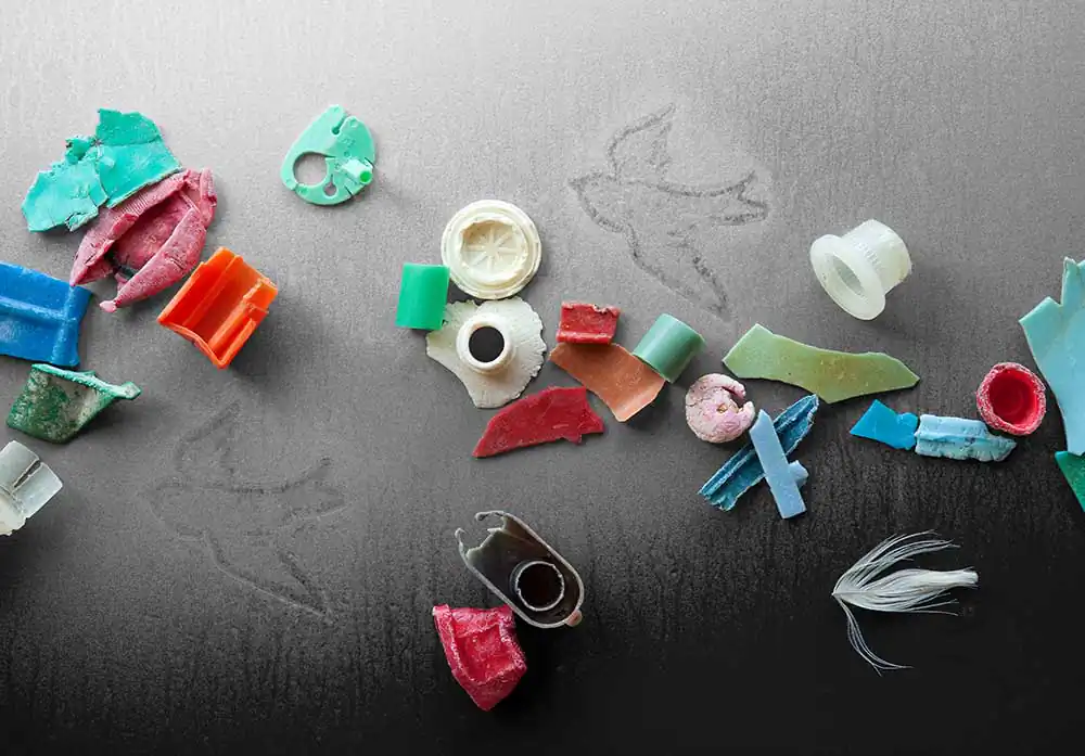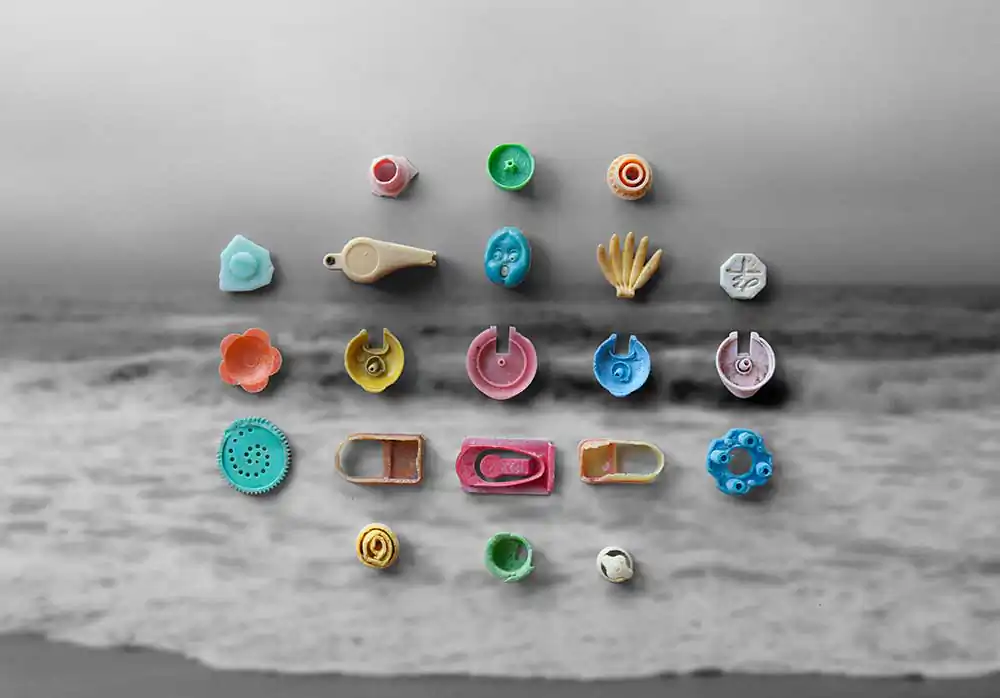 In 2010, I watched a documentary on the Monterey Bay Aquarium in which a volunteer held up a jar for the audience to see. She explained that the colorful plastic pieces filling the jar were collected from the remains of a dead albatross on Midway Atoll.