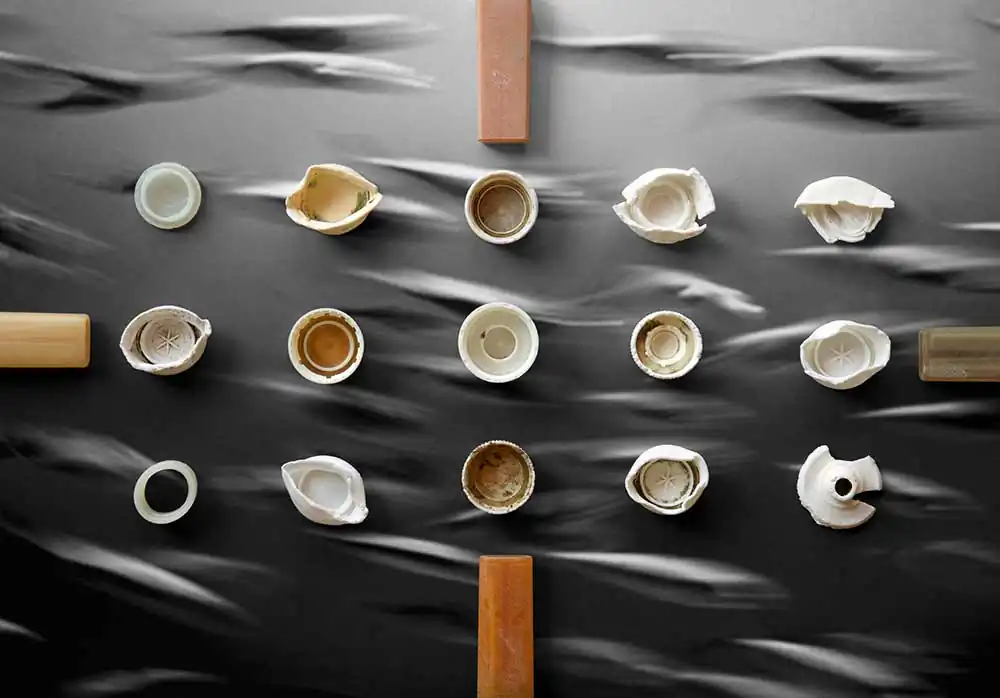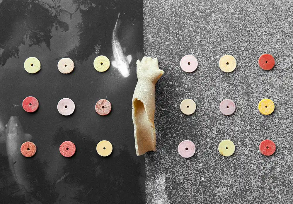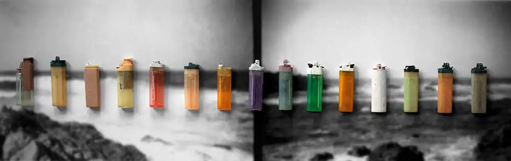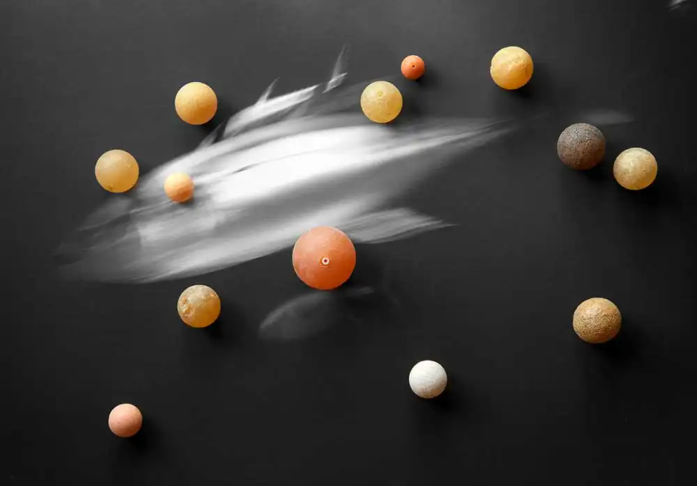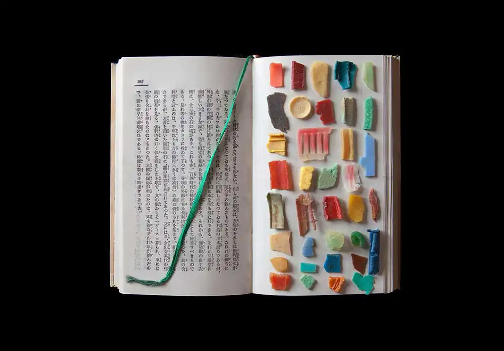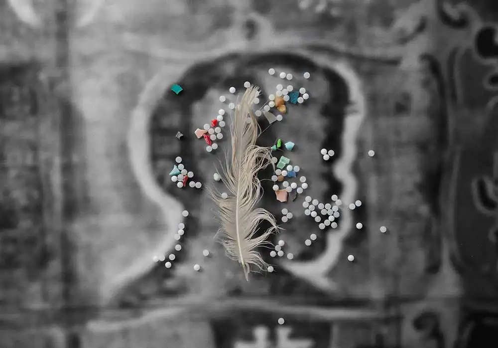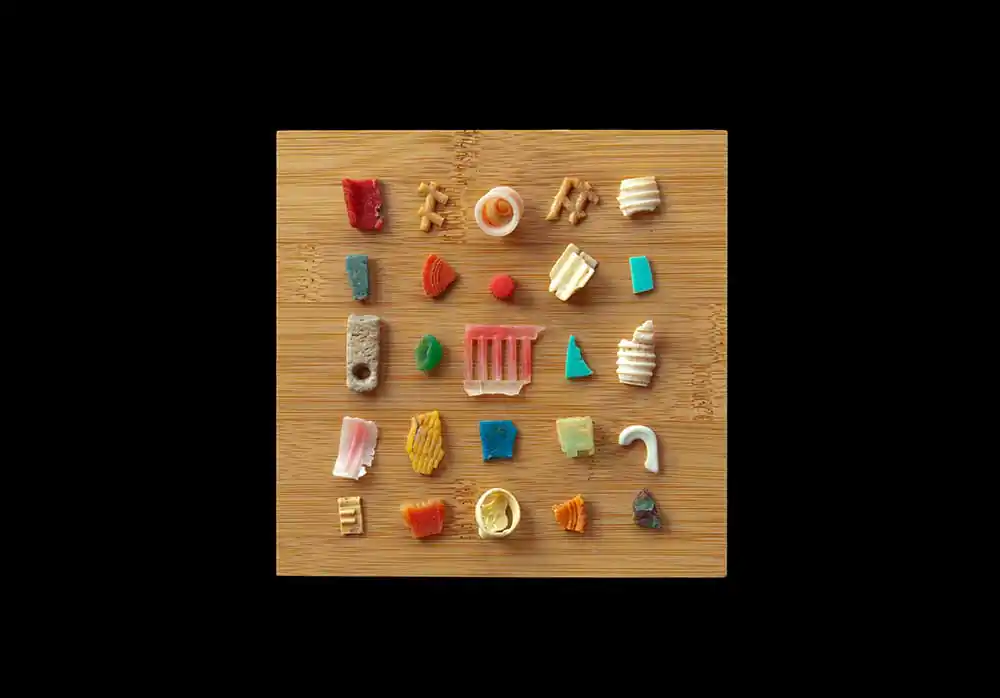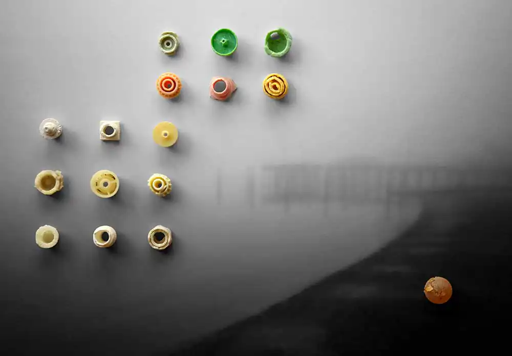 Countless albatross, mistaking floating plastic debris for food, die each year of starvation. Plastic debris, recovered from dead albatross on Midway Atoll, is the subject of False Food. I’ve been criticized for not being more aggressive in my representation of this crisis. It’s my belief that negative images tend to cause feelings of helplessness and overwhelm in people. Warnings of terror can become acts of terror themselves—triggering fear. In lieu of proliferating horrific images of ocean plastic pollution, False Food chooses to make transformative statements to raise consciousness rather than numb it. The intent of these images is to bring awareness of the problems of plastic pollution by engaging the viewer through aesthetics and reframing rather than fear.