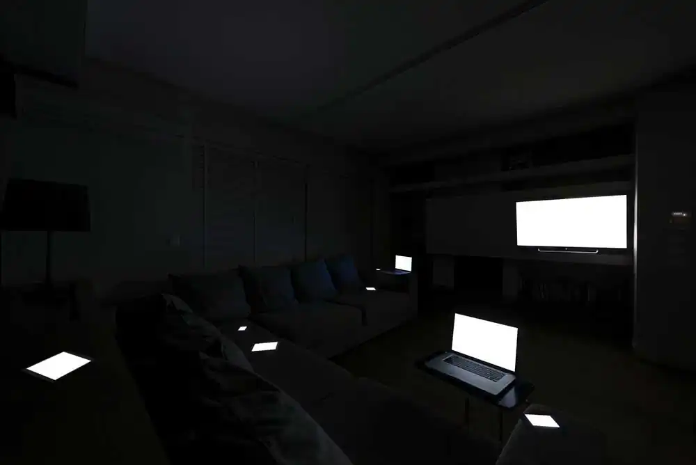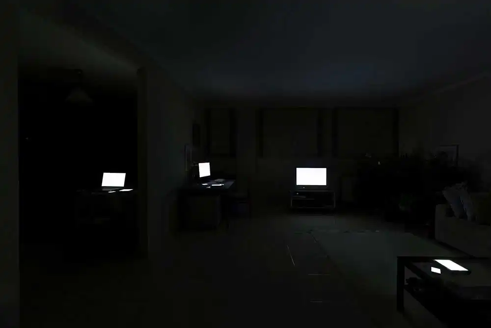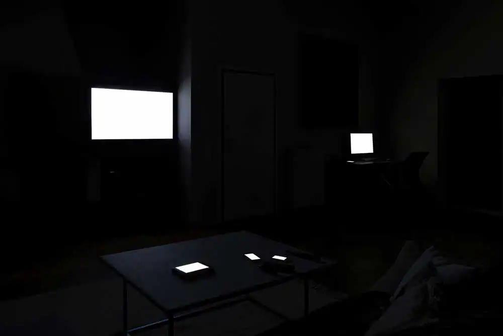 Acknowledging these facts made me look at these devices from a different perspective. In this series I create family portraits of devices, reversing the subject/object relation. In this casual scenery of our everyday life, our comfort zones this multitude of glowing immersive gates, like an opposite of black holes, promise limitless possibilities. Information, entertainment, human connection and much more, are available anywhere and anytime, breaking the physical bond with the reality that surrounds us.