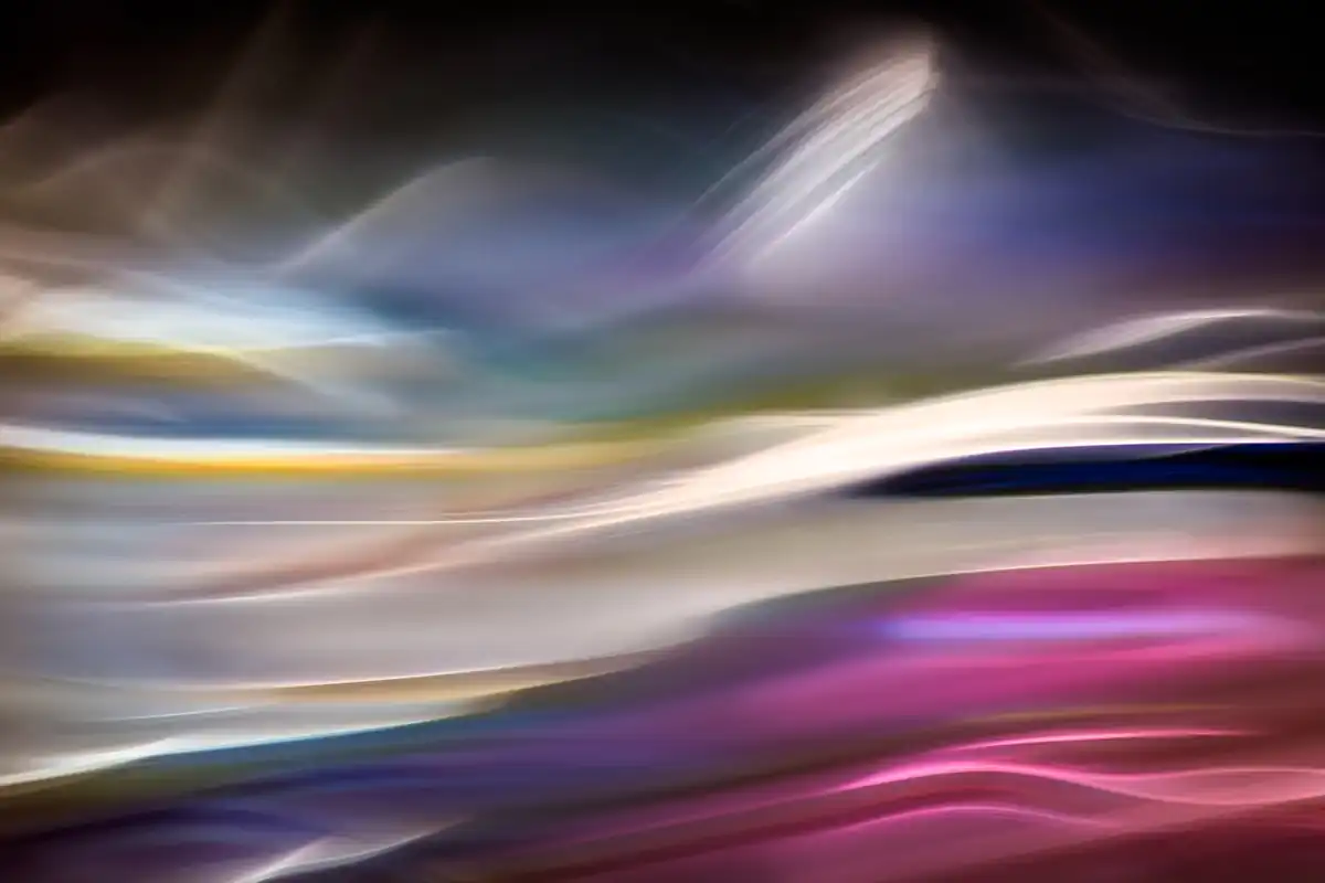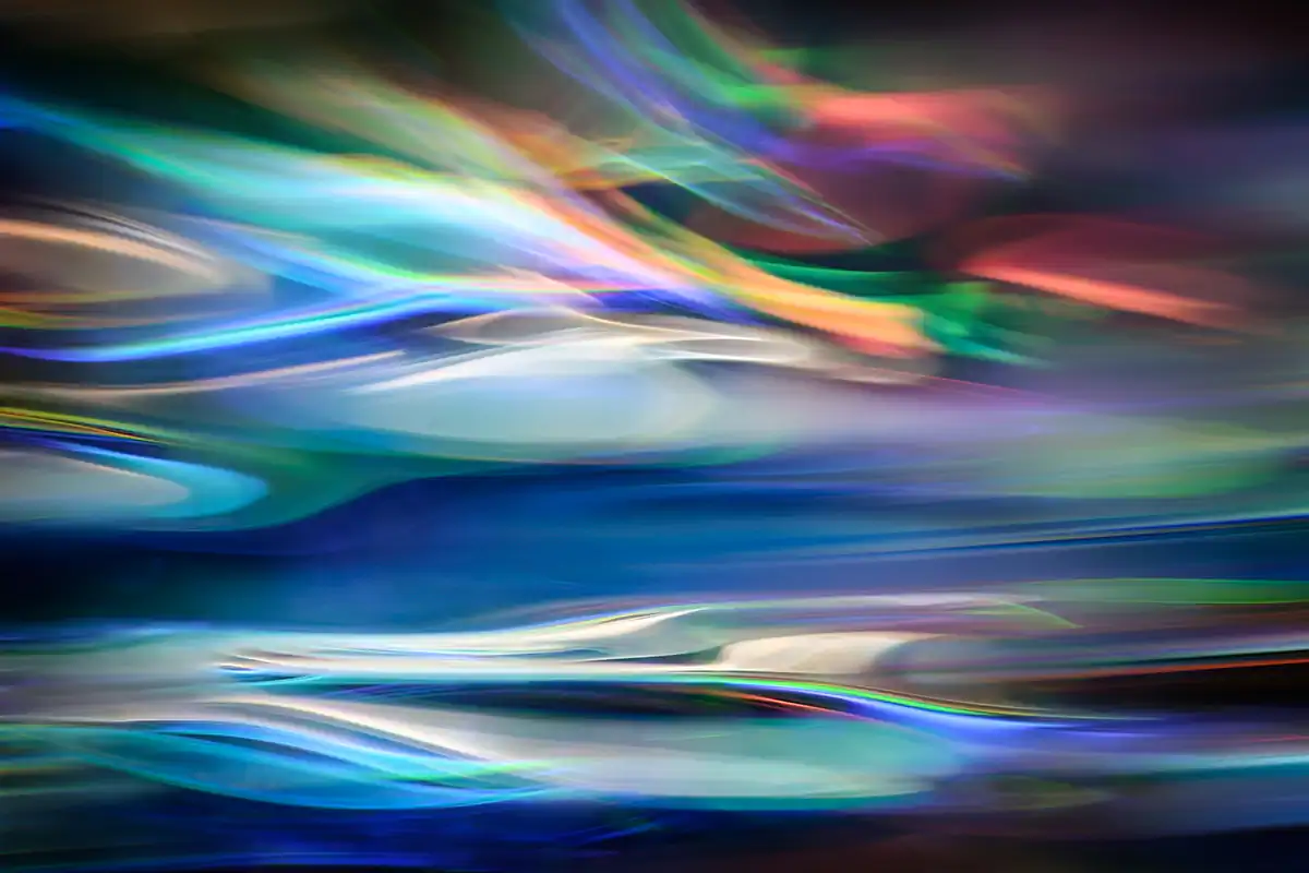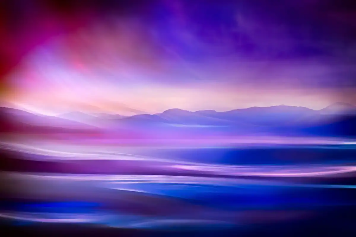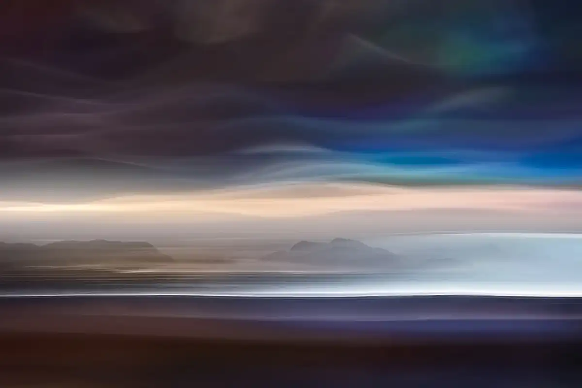 My aim in the Fantastic Landscapes project is to make pictures that are abstract impressions of landscapes or seascapes, in particular those of the Pacific Northwest, where I live. Rather than reproduce the actual scene, what I attempt to do is to show the essence of a place. There is much more to a place, to a picture, than just what you see with your eyes. There are the thoughts at the time, the sounds, the smells, what you touch … and more. All these are real. I try to make them integral to my photography. The pictures in this series are either single studio shots, or a blending of studio and outdoor (landscape or seascape) shots. All images used are my own. The studio shots are closeups of reflections in a pan of water. Imagine being by a calm lake in Autumn, sun behind you shining on the beautiful trees at the other side of the lake. What do you see on the surface of the lake? A beautiful reflection of the Autumn colours.